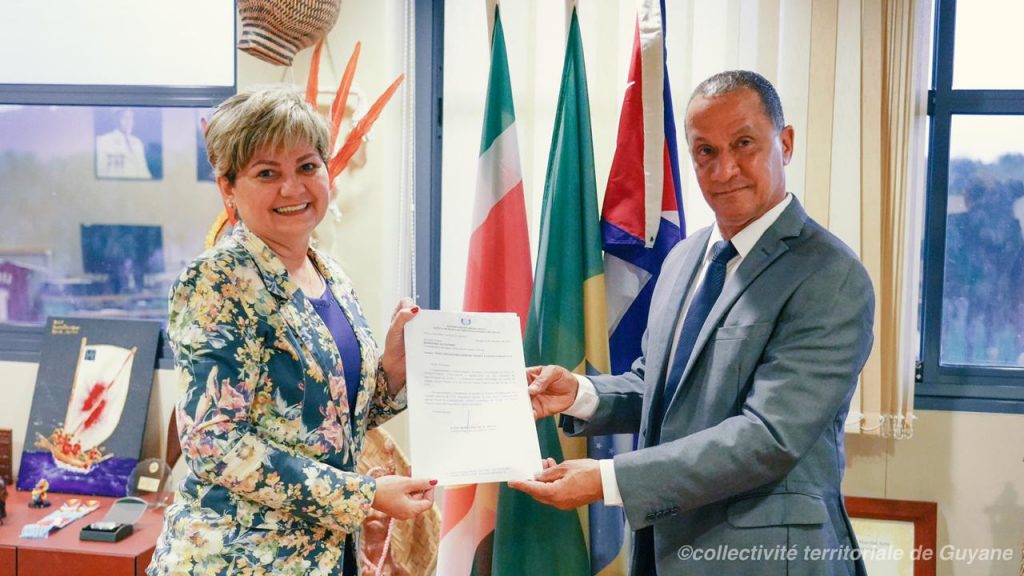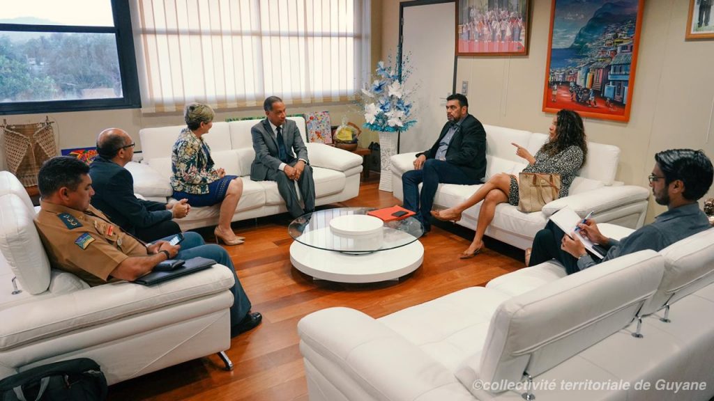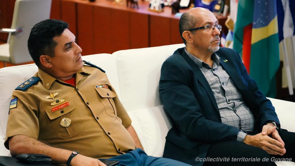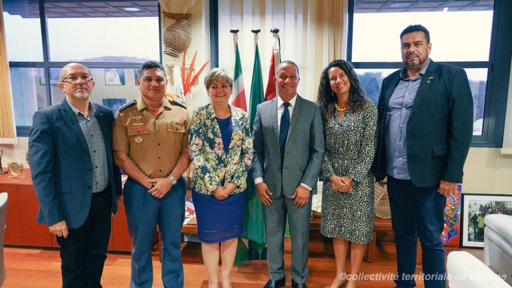 Lors de cette rencontre protocolaire, Tania Maria Barroso avait à ses côtés la Conseillère diplomatique Christaine Aquino Bonomo, Consule-Générale Adjointe et actuellement Chargée du Consulat Général du Brésil à Cayenne, Alcir Figueira Matos et Wagner José Pinheiro Costa, respectivement Secrétaire à l’Infrastructure de l’État d’Amapá et Coordinateur de l’Agence de Relations Internationales du Gouvernement de l’État d’Amapá, et le Lieutenant-Colonel Sandro Olímpio Da Silva Bonfim, Commandant du 7ème Groupement de Sapeurs-Pompiers de la ville d’Oiapoque, détachament du Corps de Sapeurs-Pompiers Militaires de l’État d’Amapá.