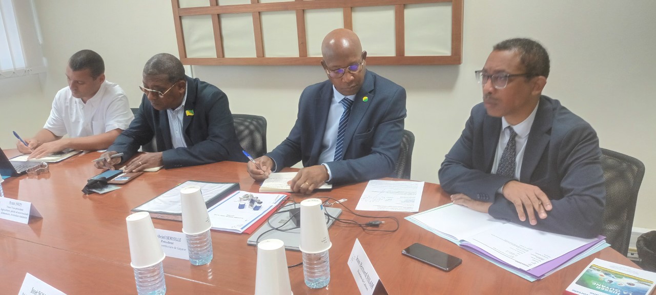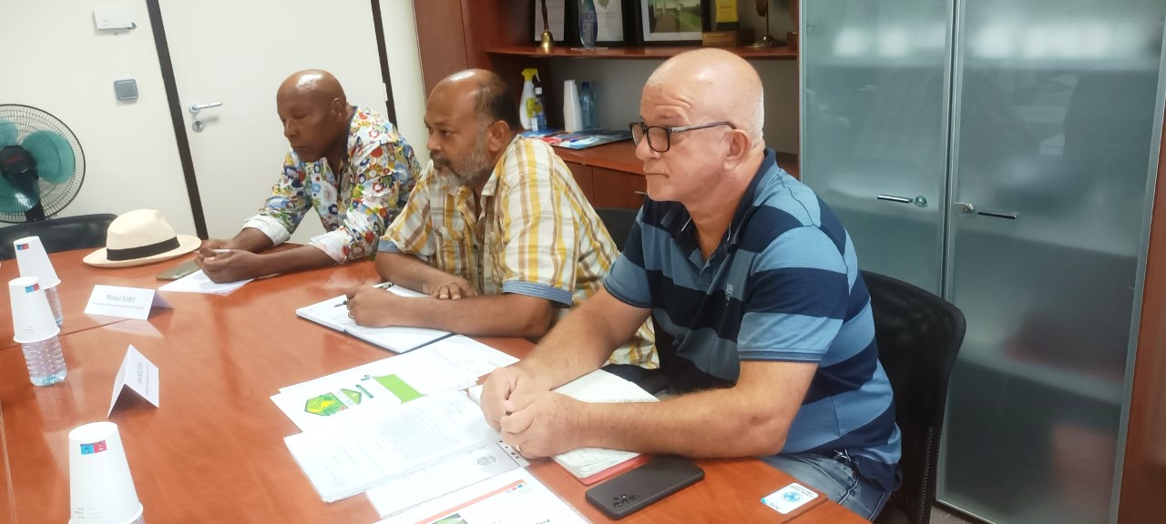 Gabriel Serville, président de la Collectivité Territoriale de Guyane, Roger Aron, 7ème Vice-président délégué à l’Agriculture et (CTG) et Patrick Cosset, Conseiller territorial délégué à la Chasse et aux Traditions, rencontraient ce mercredi 19 avril 2023, les membres de l’Association des Agriculteurs NOVA CULTURAE de Régina : le président José Soupama, Didier Dexant, vice-président et Michel Néro, Secrétaire.