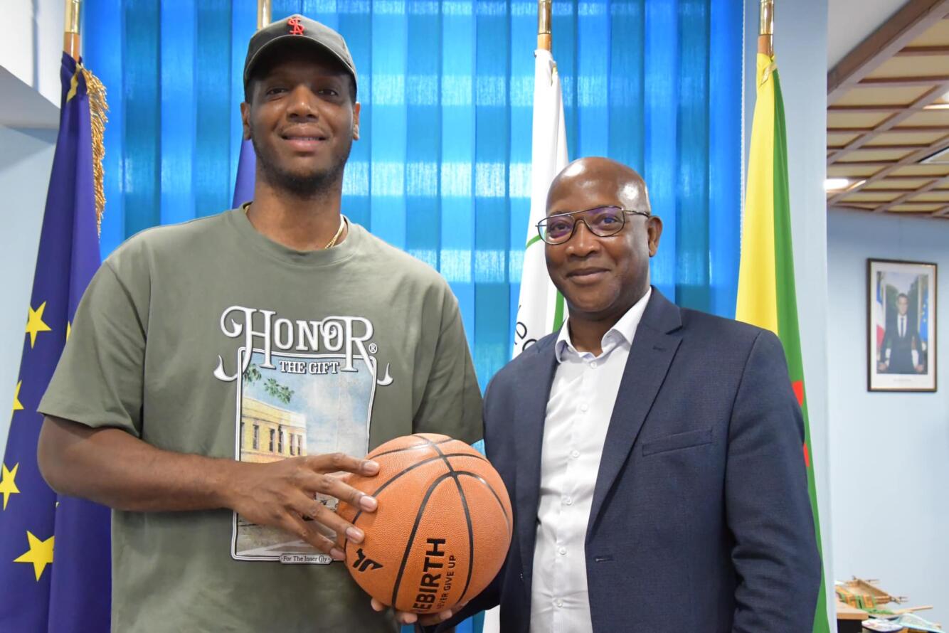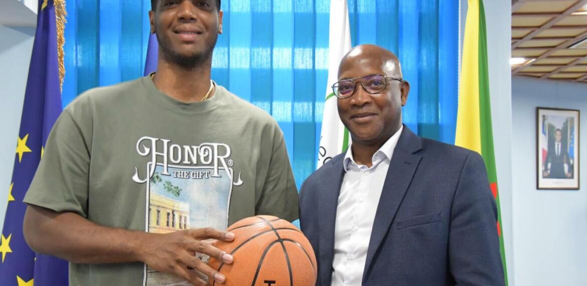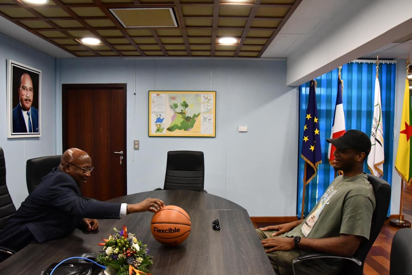 Gabriel Serville, président de la Collectivité Territoriale de Guyane, rencontrait ce jeudi 13 juillet 2023, Damien Inglis, basketteur guyanais, ancien joueur de la NBA et champion d’Europe, évoluant actuellement en Espagne en tant que capitaine de l’équipe de Valence.