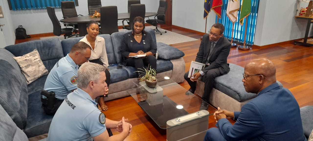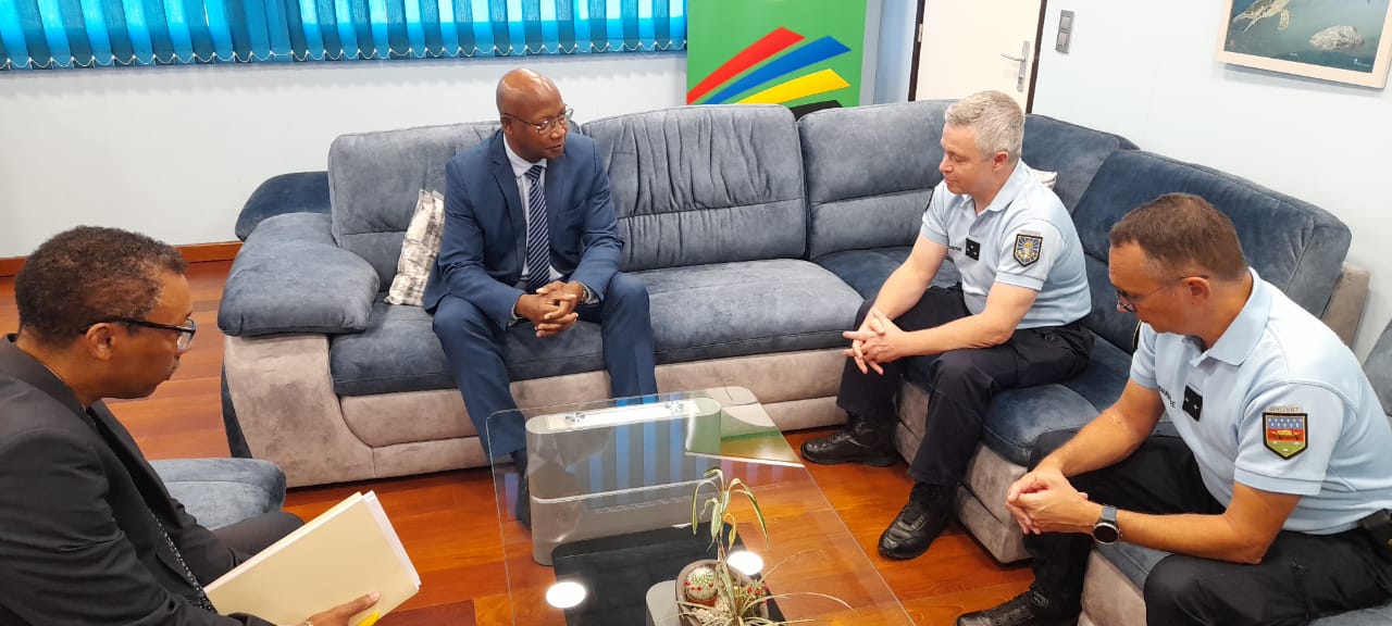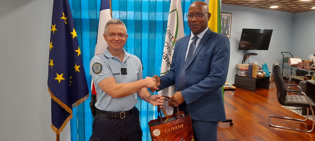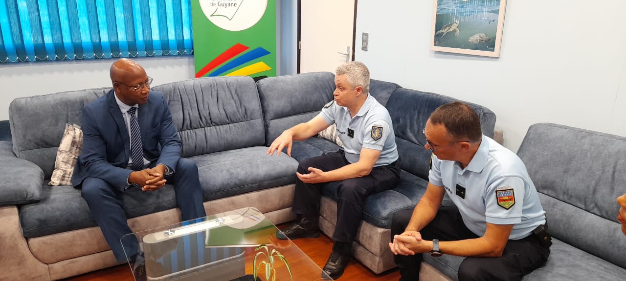 Il s’agissait pour les deux hommes d’aborder la question de la sécurité publique et les problématiques rencontrées par les forces de gendarmerie, notamment en matière de lutte contre l’orpaillage illégal, un véritable fléau pour le territoire. Compte-tenu de l’actualité, la disparition du gendarme du GIGN tué en service le 25 mars dernier, lors d’une opération de lutte contre l’orpaillage illégal, en forêt guyanaise était au cœur de cet échange.