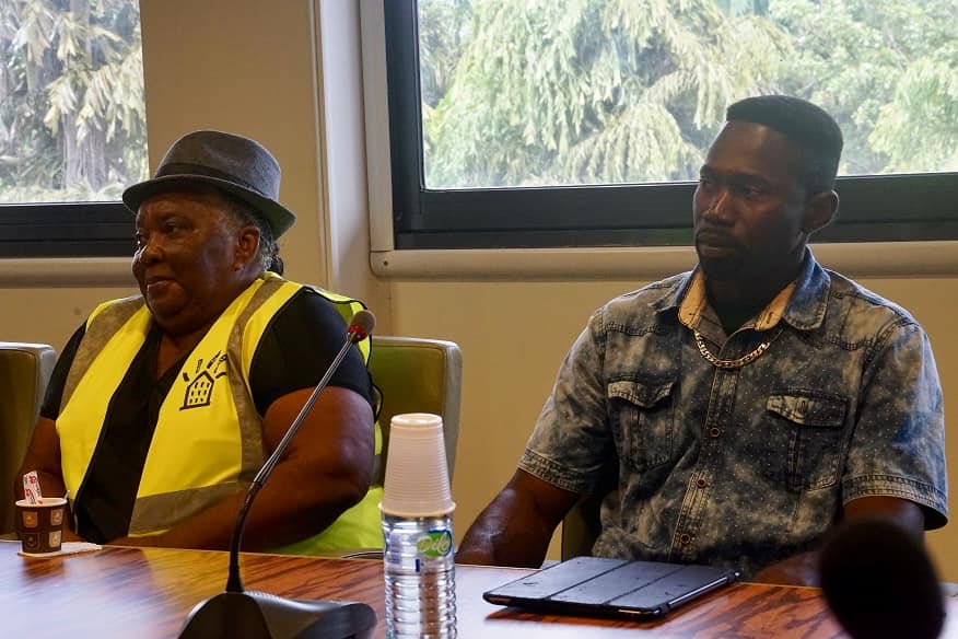 Celui-ci était accompagné de son représentant local, Marius Florella, Président de La Fédération Droit au Logement Guyane « Blou blou fini ».