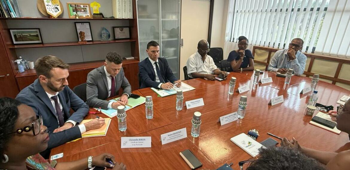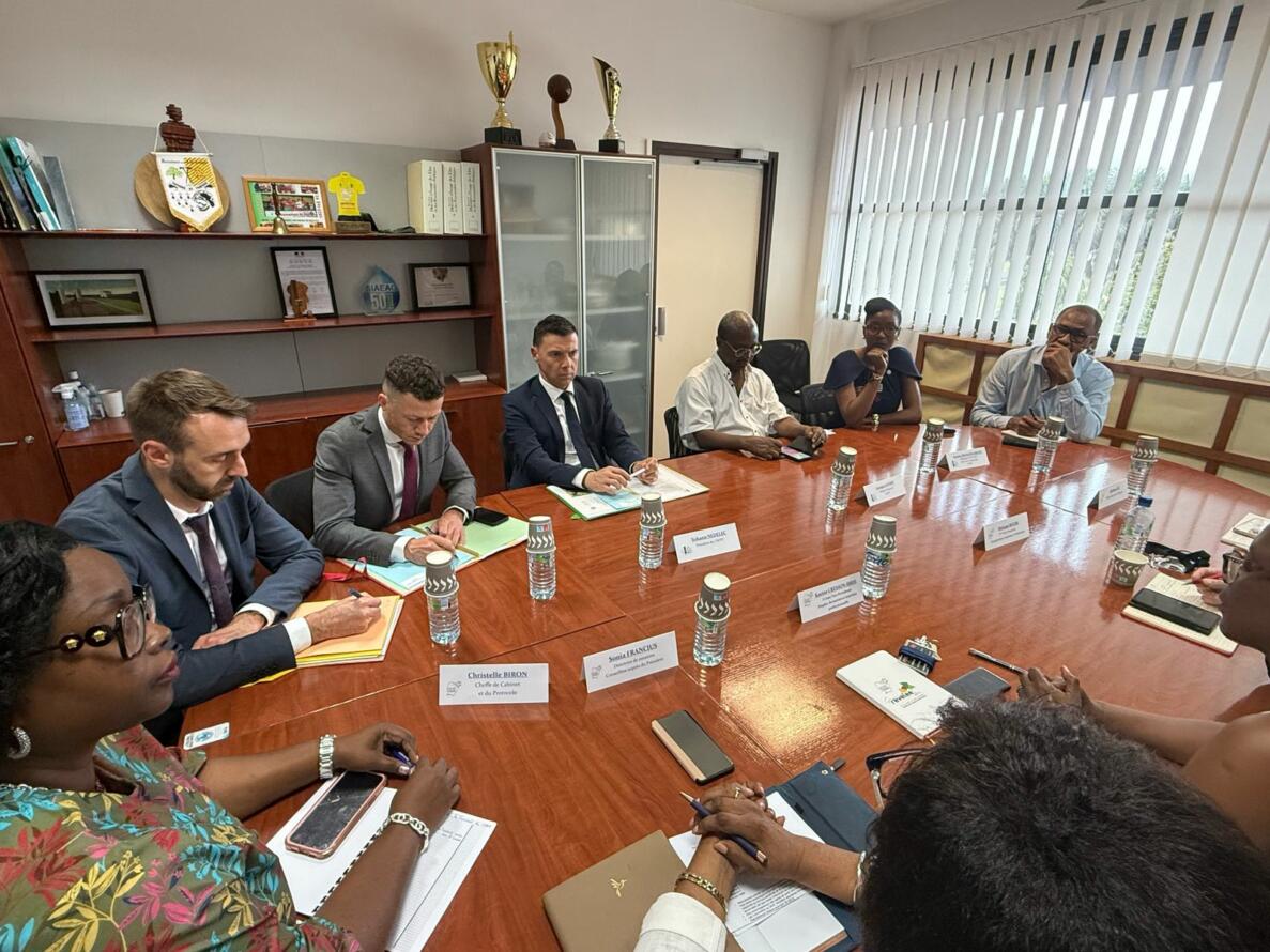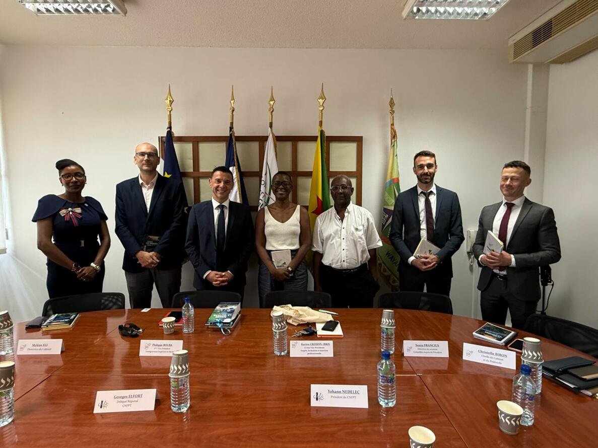 Le 7 avril 2025, Karine CRESSON-IBRIS, Vice-Présidente en charge de l’emploi, de la formation et de l’insertion professionnelle, et Philippe BOUBA, Vice-Président délégué à l’enseignement supérieur et à la recherche, ont rencontré le Président du Centre National de la Fonction Publique Territoriale (CNFPT), Yohann NEDELEC et le Délégué Régional, Georges ELFORT, accompagnés de Madame Aurore FRANCIUS, directrice du CNFPT Guyane, récemment nommée sous-préfète à l’arrondissement d’Argelès-Gazost.
