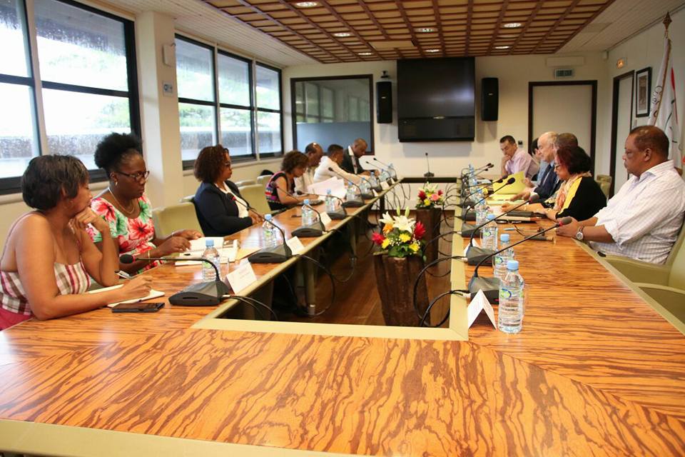 Son programme a débuté ce lundi 22 janvier 2018 par une rencontre avec le Président de la CTG et les élus de la commission permanente. Étaient notamment présents, Hélène SIRDER, François RINGUET, Catherine LEO, Jean-Pierre ROUMILLAC, Audrey MARIE, Claudia LING, Fortuné MECENE, Rolande CHALCO-LEFAY, Diane JOJE-PANSA, Katia BECHET et François DEKON.