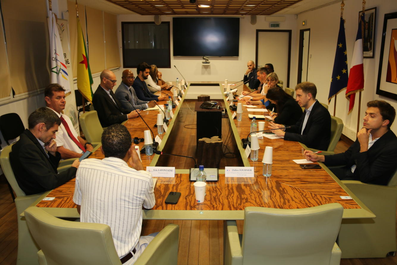 Ce mercredi 14 décembre 2022, une rencontre bilatérale était organisée à l’hôtel territorial entre Gabriel Serville, président de la Collectivité territoriale de Guyane (CTG) et Sylvie Retailleau, Ministre de l’enseignement supérieur et de la recherche. A l’issue de cette rencontre, un temps d’échanges avec Philippe Bouba, 5è vice-président de la CTG en charge de l’enseignement supérieur et de la recherche, Thibault Lechat-Vega, 3è vice-président, Sherly Alcin, conseillère territoriale, Serge Long-Him-Nam, conseiller territorial, Éric Lafontaine, directeur de Guyane Développement Innovation, Antoine Primerose, président de l’Université de Guyane et les services de l’État.