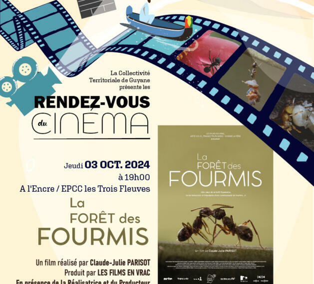 Dans le cadre des Rendez-vous du cinéma, la Collectivité Territoriale de Guyane et l’EPCC Les Trois Fleuves proposent la projection du film documentaire « LA FORET AUX FOURMIS », ce jeudi 3 octobre 2024, à l’Auditorium de l’Encre.