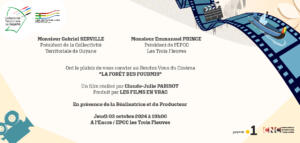 Cette projection aura lieu en présence de la réalisatrice, Claude-Julie PARISOT, et du producteur, Benoit TSCHIERET. Le documentaire est une production des Films en vrac, en partenariat avec le Service Cinéma et Audiovisuel (SCAV) de la Collectivité Territoriale de Guyane et l’EPCC Les Trois Fleuves.