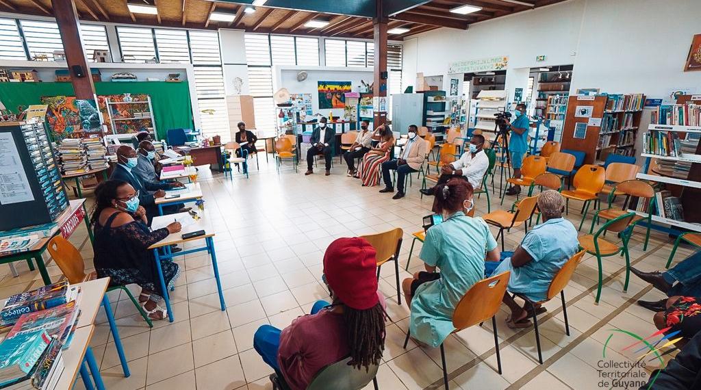 Si dans les zones rouges, et notamment sur le littoral guyanais les élèves n’ont pas encore regagné les bancs de l’école, ce n’est pas le cas des collégiens d’Elie Castor à Sinnamary. C’est là-bas que s’est rendu vendredi 3 septembre 2021, Gabriel Serville, président de la Collectivité Territoriale de Guyane pour son premier déplacement dans le cadre de sa tournée de rentrée.