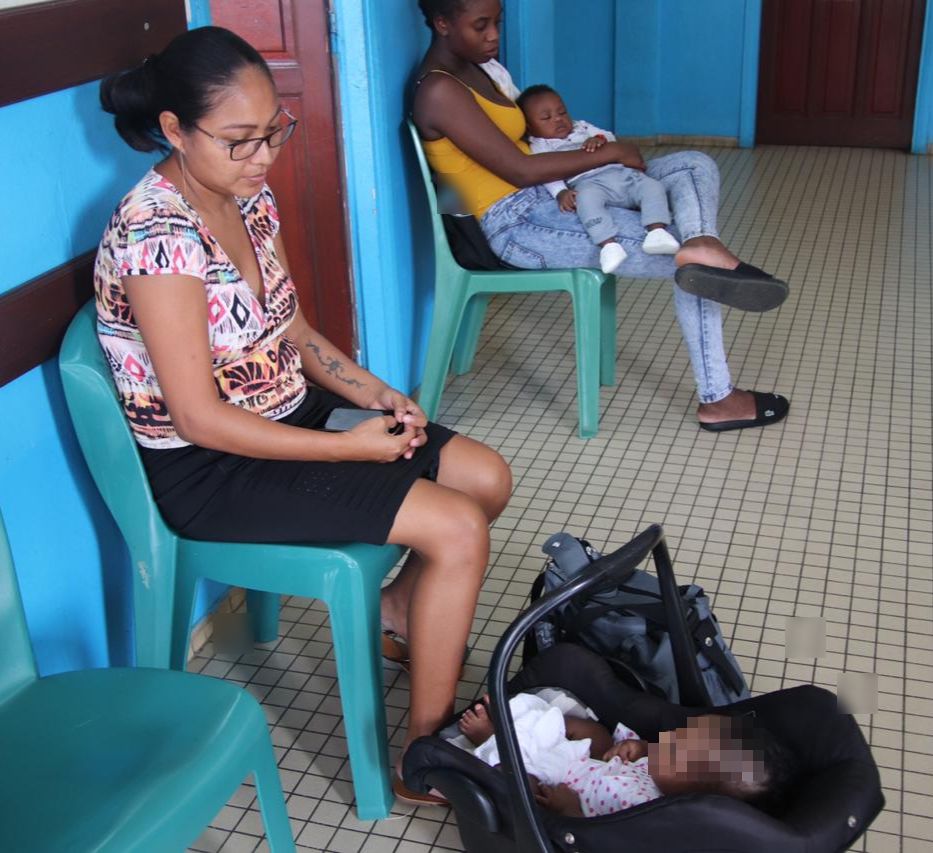 A 10 h, les parents de Christie, Klyan et Maïna, âgés de 4 mois, patientent en salle d’attente. Il s’agit d’une consultation de routine pour les nourrissons, avec un suivi relatif à la pesée, l’alimentation, le soutien à l’allaitement, le sommeil, l’éveil etc.