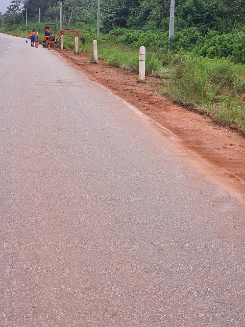 La Collectivité Territoriale de Guyane (CTG) réalise des travaux de dérasement afin de retirer la terre en excès sur la partie surélevée de l’accotement d’une portion de la RD9 entre Mana et Saint-Laurent du Maroni.
