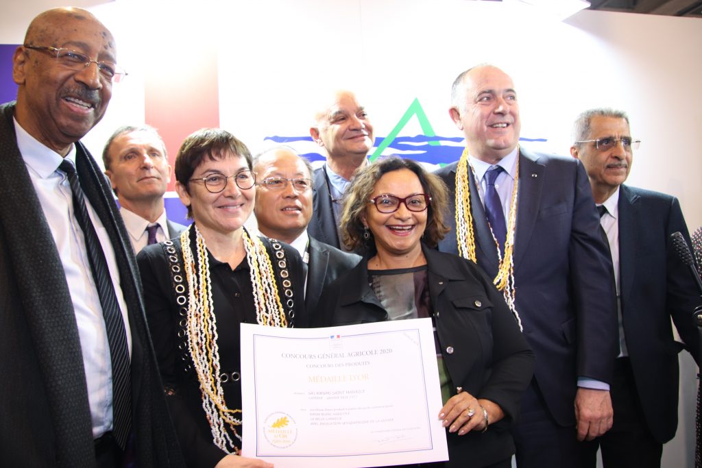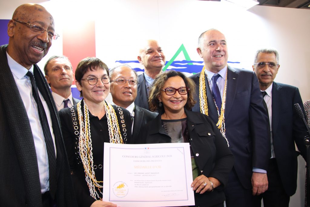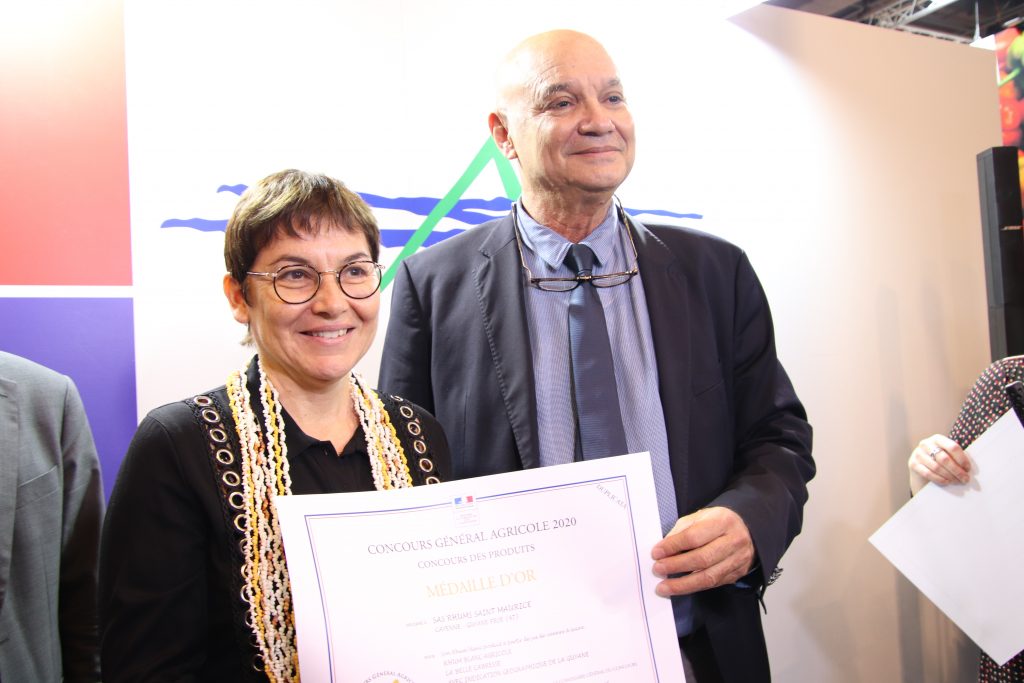 Une médaille de bronze pour la miellerie de Macouria, avec le miel wassai présenté, l’argent pour la brasserie guyanaise jeune gueule, et une médaille d’or pour la Belle Cabresse, rhum blanc agricole Saint-Maurice qui a reçu la médaille des mains de Didier Guillaume, Ministre de l’agriculture et d’Annick Girardin, Ministre des Outre-mer.