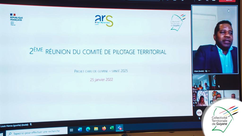 Ce mardi 25 janvier 2022, Gabriel Serville, président de la Collectivité territoriale de Guyane (CTG), co-présidait aux côtés de Clara de Bort, directrice générale de l’Agence Régionale de Santé (ARS), – qui représentait le préfet de Guyane– la 2ème réunion du Comité de pilotage du projet de « CHRU de Guyane – Santé 2025 » organisée en visioconférence en raison de la situation sanitaire.