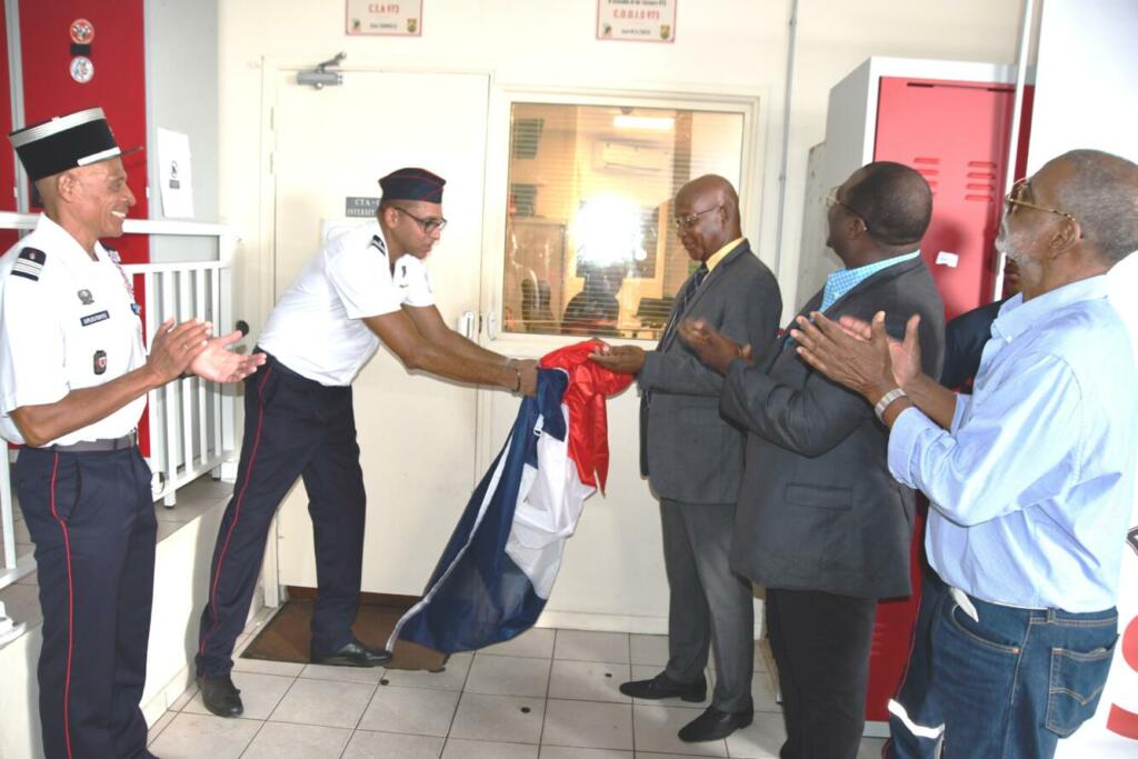 A l’issue de ce cérémonial, l’exécutif territorial et le Directeur du SDIS-973 ont salué la mémoire des deux Sapeurs-pompiers disparus, et inauguré les plaques commémoratives à leurs noms (José Ho-A-Chuck et Alain Chonville), en présence d’invités et de leurs familles.