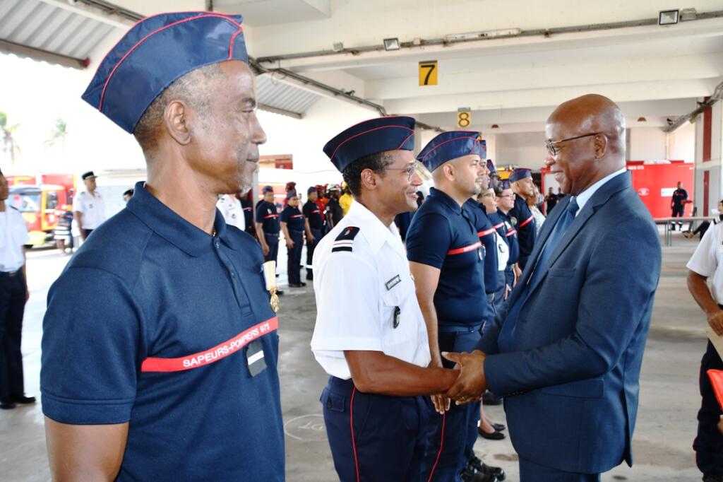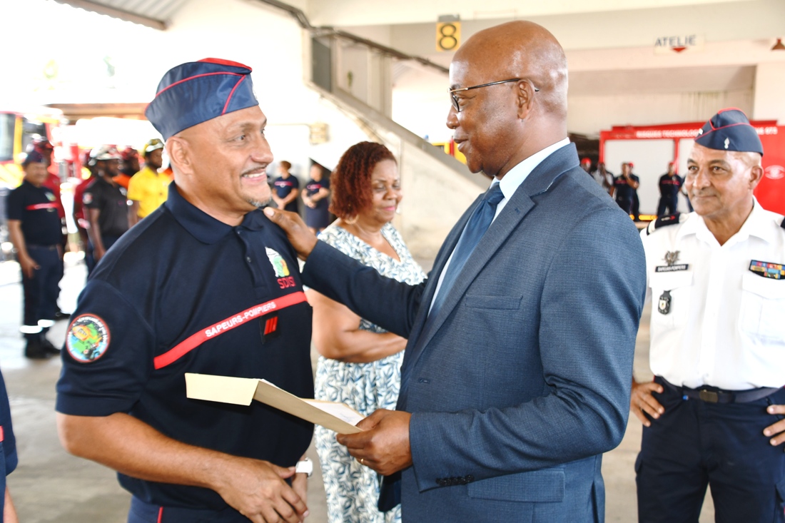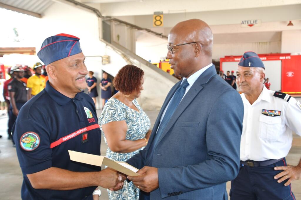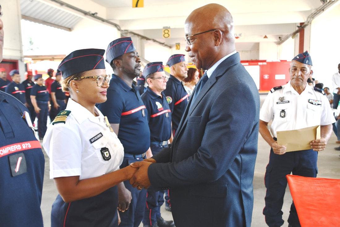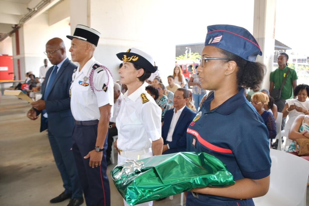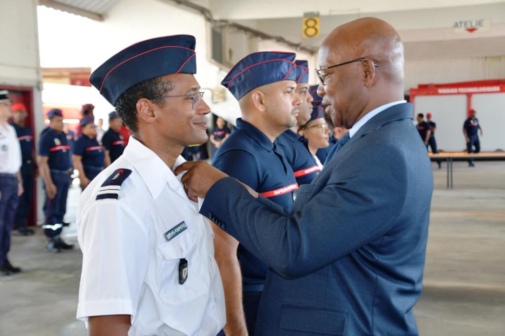 Mercredi 6 septembre 2023 a eu lieu une remise de médailles et de grades à 20 sapeurs-pompiers du SDIS Guyane et de nouveaux véhicules et engins de secours aux différents centres du territoire. Gabriel Serville, président de la Collectivité Territoriale de Guyane et du Conseil d’Administration du SDIS-Guyane a procédé à la remise de ces distinctions en présence de Jacqueline Mercury-Giorgetti, Sous-préfète de la Région-Guyane et de Jean-Paul Levif, Directeur Chef de Corps des Sapeurs-pompiers de Guyane au Centre d’Incendie et de Secours de Cayenne.