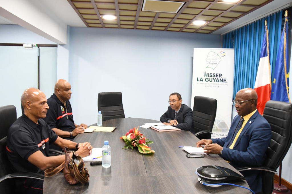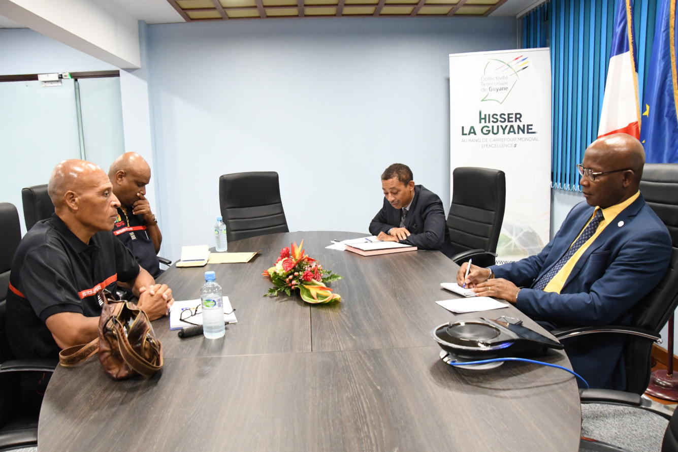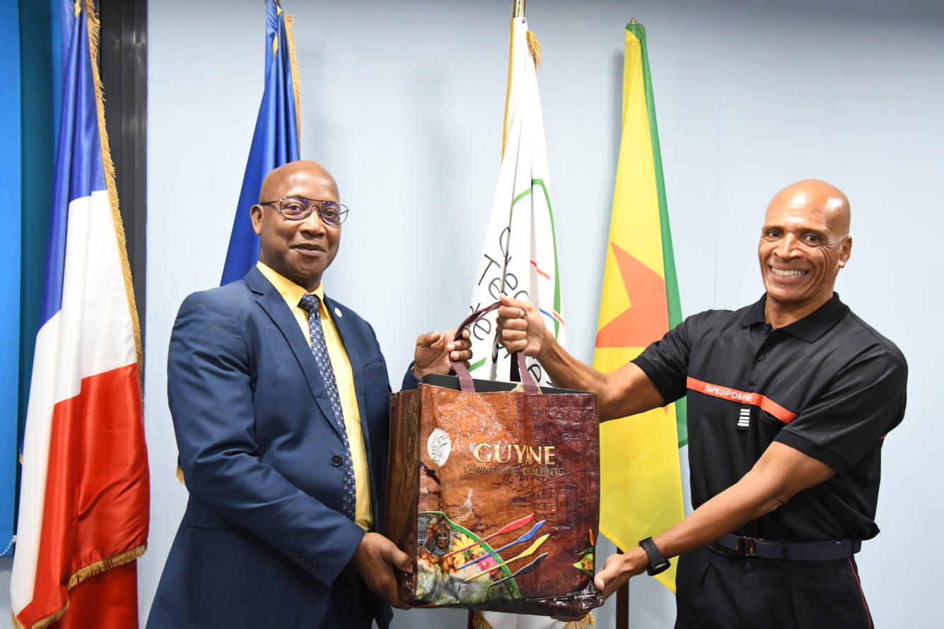 Gabriel Serville, président de la Collectivité Territoriale de Guyane rencontrait pour la première fois, le colonel Jean-Paul Levif, fraîchement nommé directeur du Service Départemental d’Incendie et de Secours (SDIS) de Guyane, accompagné du lieutenant-colonel, Jean-Albert Lama.