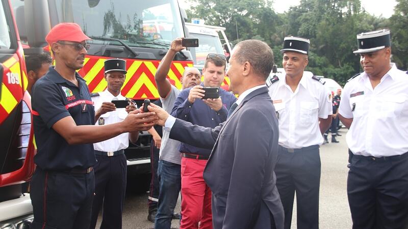 C’est avec un enthousiasme certain que le Président de la CTG et du CA-SDIS appuyé par ses invités, parmi lesquels, le Préfet de Guyane, Patrice Faure, la Maire de Cayenne, Marie-Laure Phinéra-Horth, le 1er adjoint au Maire de Cayenne Philippe Kong, le Sénateur Georges Patient, le Maire de Macouria, Gilles Adelson, les conseillères Territoriales, Rolande Chalco-Lefay, Laurietta Desmangles Elainne Jean, Emilie Ventura, et le conseiller territorial Jean-Claude Labrador, a remis les clés de ces nouvelles acquisitions, parmi lesquelles :