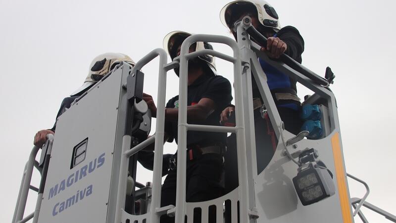 A l’issue de ces nouvelles distinctions, une démonstration a été proposée aux officiels présents pour le Camion Echelle Pivotante Combinée (EPC).