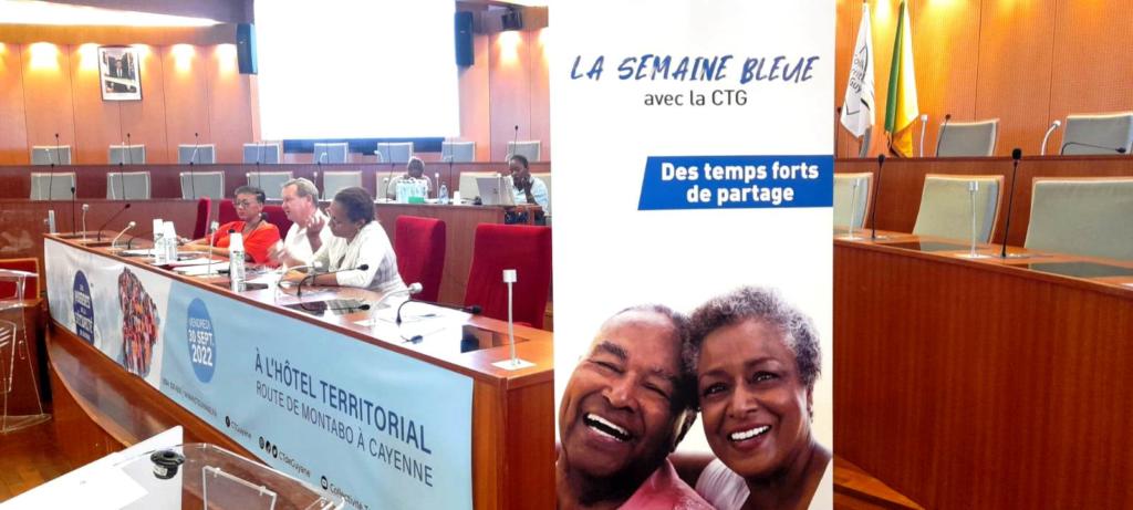 Deux mini-conférences Semaine Bleue dédiées à la valorisation de la place des aînés dans la vie sociale se sont tenues sous la présidence de Samantha Cyriaque, 8ème vice-présidente de la CTG déléguée à l’Autonomie et au Handicap, en présence d’un public attentif, ce mardi 4 octobre 2022, dans la salle des délibérations de l’Hôtel Territorial à Cayenne.