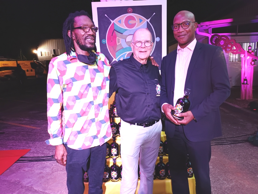 A l’occasion de 10ème édition de la Semaine de l’Industrie du 22 au 28 novembre 2021, Gabriel Serville, président de la Collectivité Territoriale de Guyane (CTG), et Thibault Lechat-Vega, 3ème vice-président de la CTG délégué aux fonds européens, ont visité ce mercredi 24 novembre 2021 la Société SAS Délices de Guyane qui célébrait le lancement d’une nouvelle gamme de produits « Liqueur Or boisé ». Une gamme produite en série limitée pour les fêtes de Noël et étiquetée à partir d’un symbole traditionnel Tembé réalisée par Franky Amété, artiste peintre guyanais.