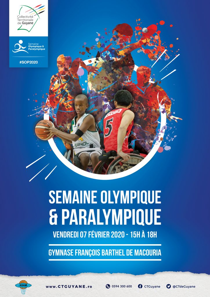 Dans le cadre de sa politique de développement du sport et de la dynamique de candidature de la collectivité pour obtenir le label « Terre de jeux 2024 » et devenir « Centre de préparation », la Collectivité Territoriale de Guyane (CTG) participe à la Semaine Olympique et Paralympique 2020 et organise une animation autour du handibasket le Vendredi 07 février 2020 de 15h à 18h au Gymnase François BARTHEL de Macouria.