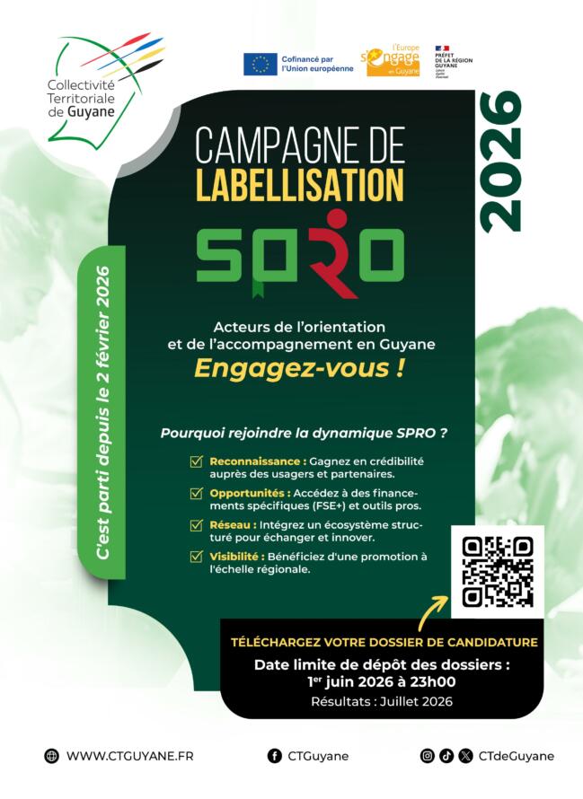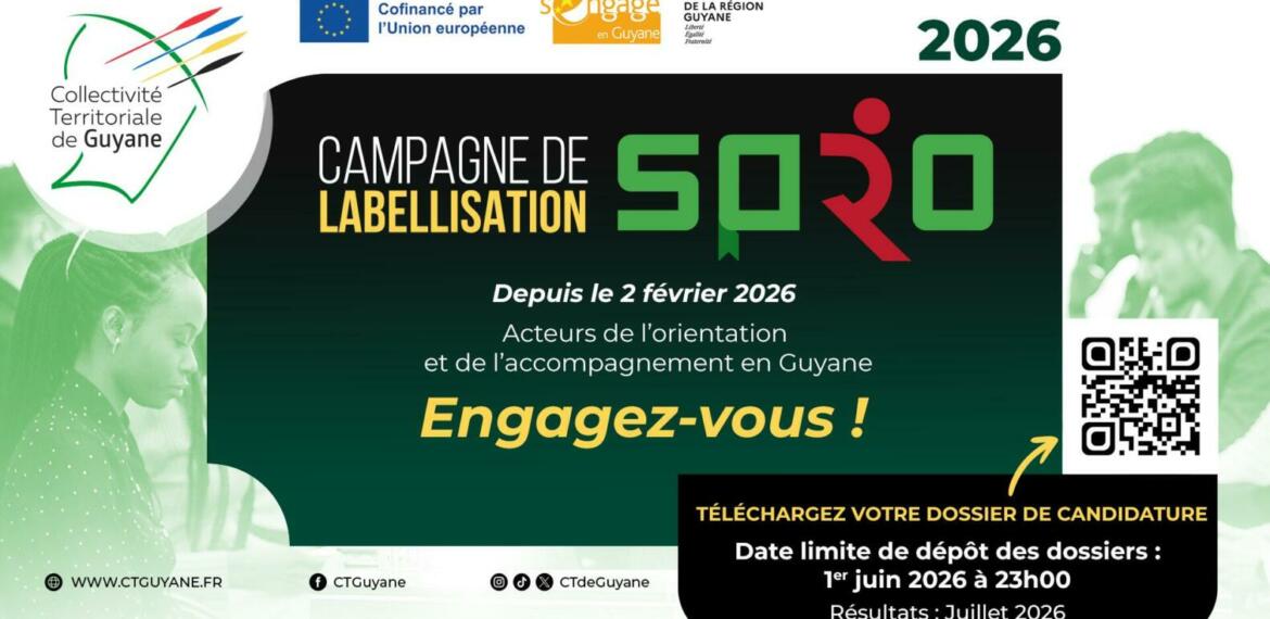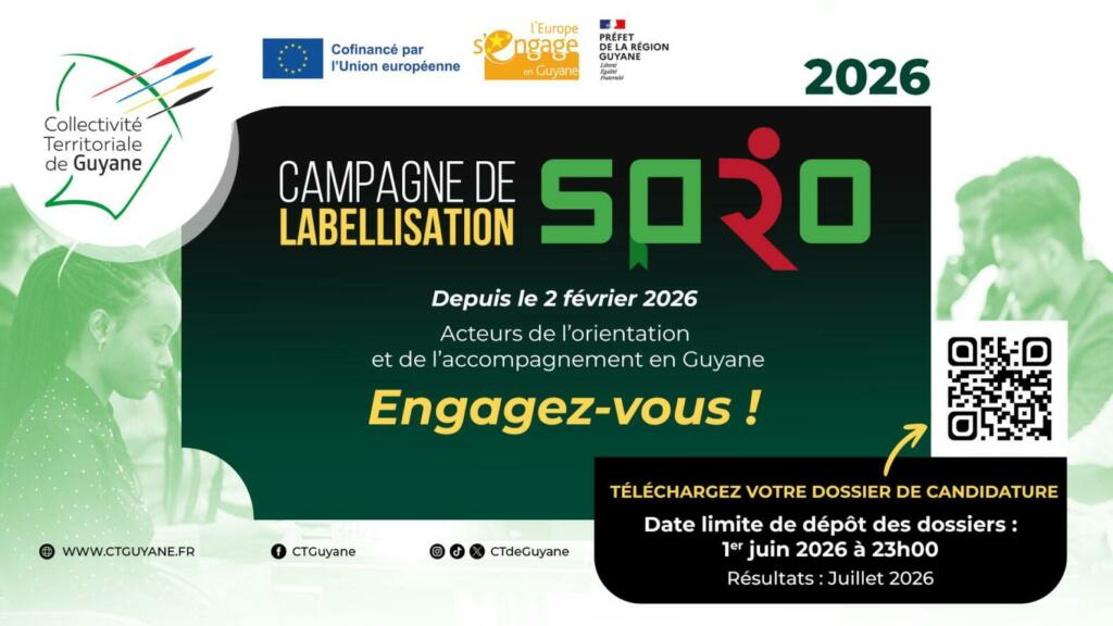 Le Service Public Régional de l’Orientation (SPRO) de Guyane lance sa seconde campagne de labellisation à compter de ce lundi 2 février 2026.