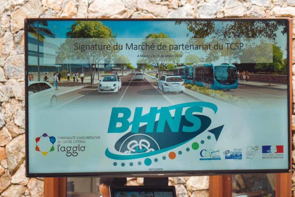 Ce vendredi 20 décembre 2019, se déroulait la signature du marché de partenariat du projet de Transport en Commun en Site Propre, à l’EPFAG, en présence de Rodolphe Alexandre, président de la Collectivité Territoriale de Guyane (CTG), de Marc Del Grande, préfet de Guyane, de Marie-Laure Phinéra Horth, présidente de la CACL, d’Isabelle Patient, directrice déléguée à l’habitat, l’aménagement et la mobilité de la CACL, de François Ringuet, maire de Kourou et président de la CCDS, de Serge Smock, maire de Matoury, du lauréat du concours, et des autres acteurs engagés autour du projet.