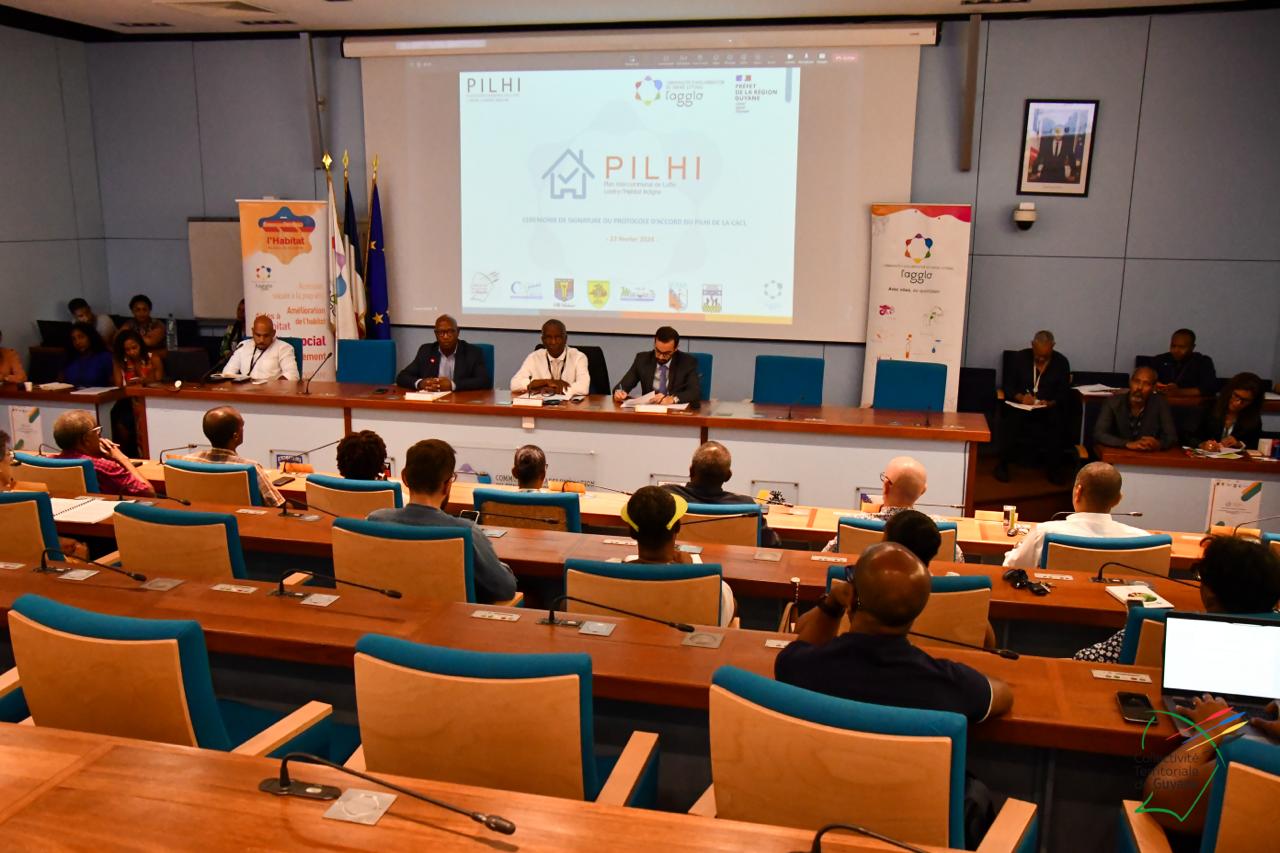Le protocole d’accord du Plan Intercommunal de Lutte contre l’Habitat Indigne (PILHI) de la CACL était signé ce mercredi 22 février 2024, par plusieurs partenaires. La Collectivité Territoriale de Guyane, la CACL, la préfecture de la Guyane, les maires du territoire de la CACL, les bailleurs sociaux, les acteurs de l’habitat, les organismes de santé et de protection sociale se sont engagés dans le cadre de leurs compétences respectives pour les 6 années à venir.