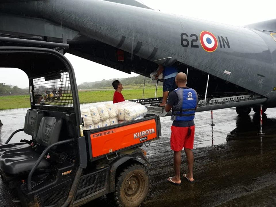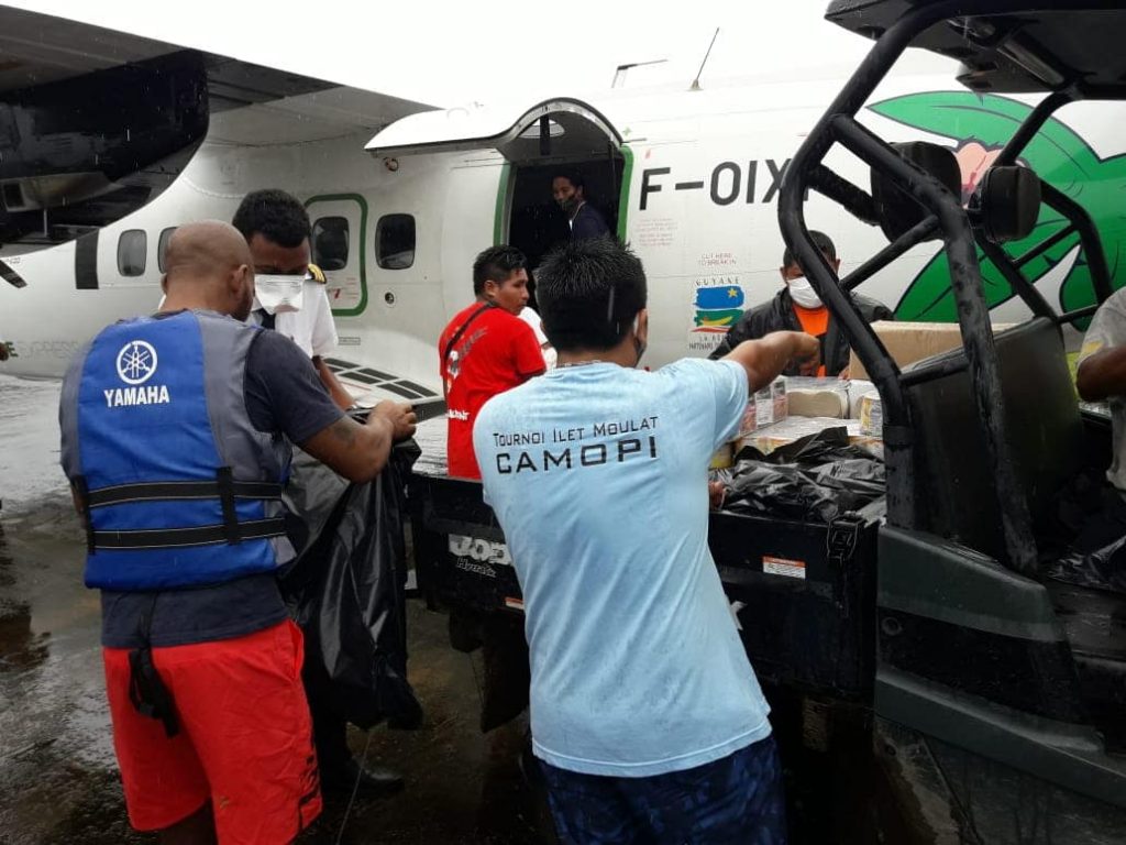 Un engagement du Président de la CTG, Rodolphe Alexandre, qui s’est concrétisé par l’envoi de 2,8 tonnes de produits acheminées par l’armée, et de 1,3 tonne via Air Guyane.