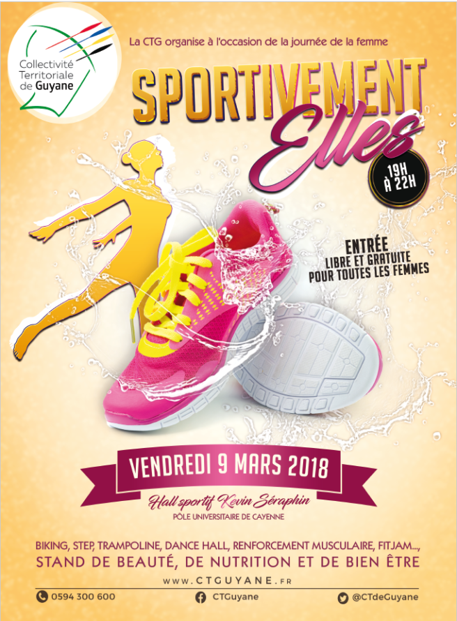 A l’occasion de la journée de la Femme, la CTG met en place une manifestation sportive 100% féminine, le Vendredi 09 Mars de 19h à 22h , au Hall sportif Kevin SERAPHIN.