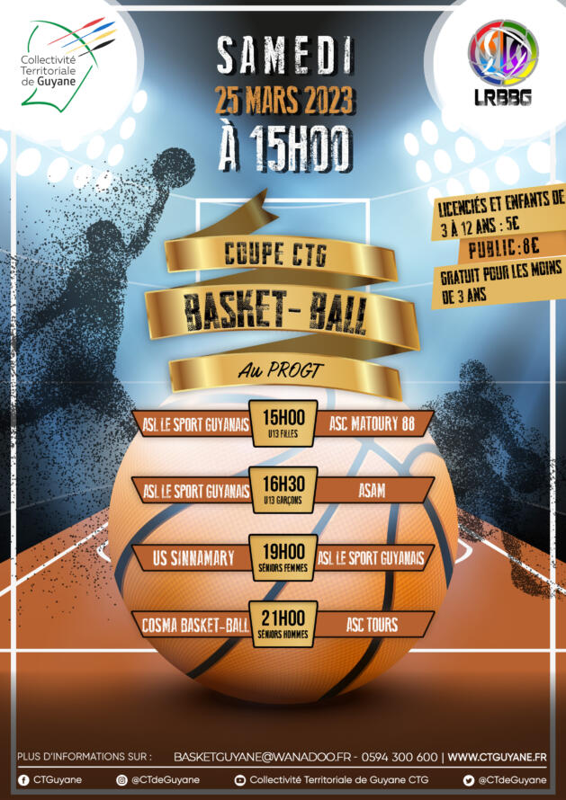 Dans le cadre de sa politique de soutien et de développement du sport, par la mise en place de compétitions visant à favoriser l’émergence du sport élite, la Collectivité Territoriale de Guyane (CTG) poursuit son partenariat avec la Ligue de Basket-ball de la Guyane avec la Coupe CTG de Basket- Ball qui revient pour une nouvelle édition.