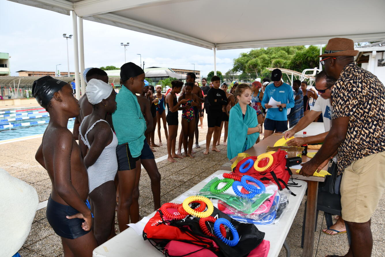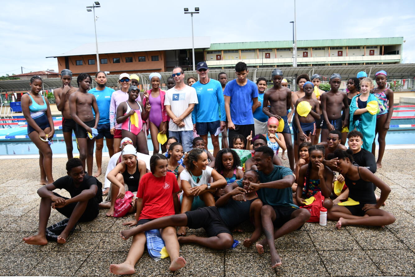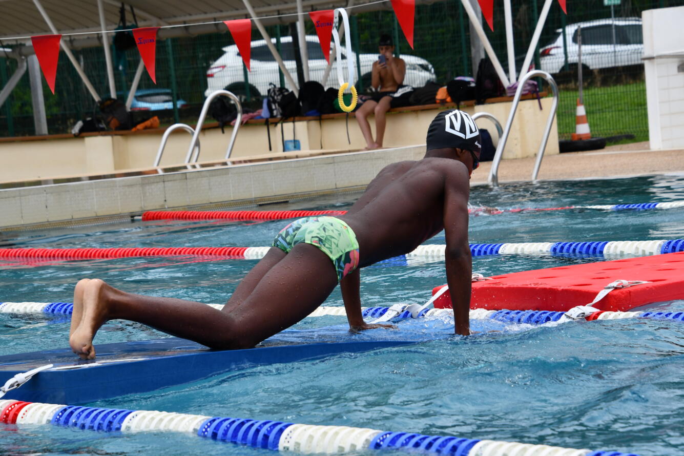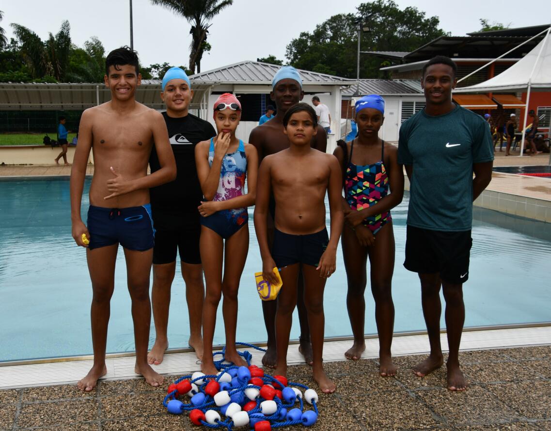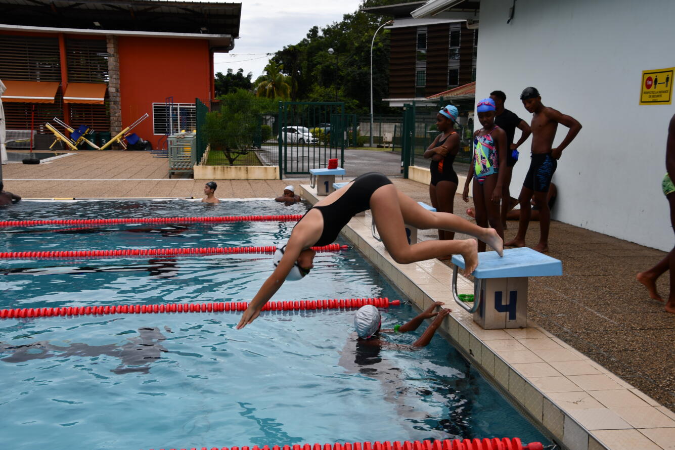 Une quarantaine de jeunes des associations sportives scolaires de 4 collèges de l’île de Cayenne (Justin Catayée, Auxence Contout Gérard Holder, Eugène Nonnon), se sont affrontés par équipes sur un parcours CROSS-SWIM sous forme de relais, alliant des épreuves de natation et de fitness.