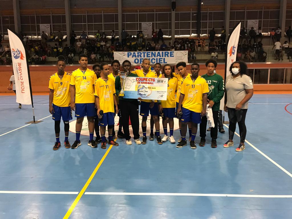 Les finales de la Coupe CTG de Handball 2020, qui n’avaient pu se tenir plus tôt en raison de la crise sanitaire, se sont jouées ce mercredi 23 février 2022, au hall Kévin Séraphin à Cayenne.