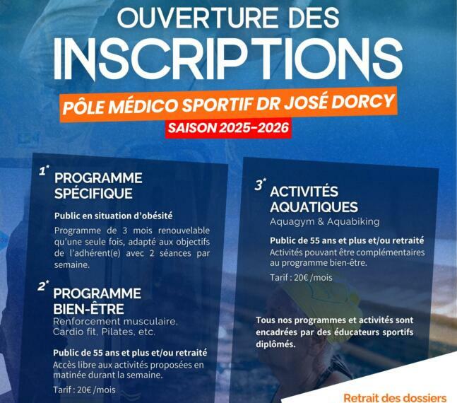La Collectivité Territoriale de Guyane informe de l’ouverture des inscriptions au Pôle Médico-Sportif (PMS) Dr José Darcy pour la saison 2025-2026.