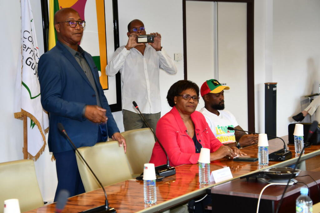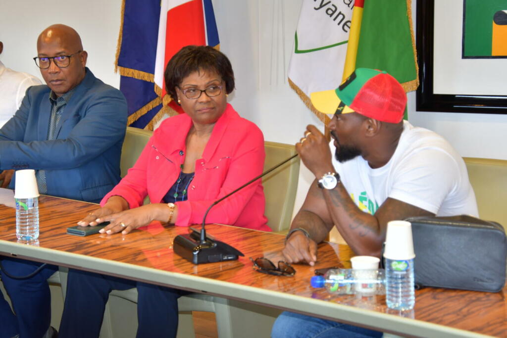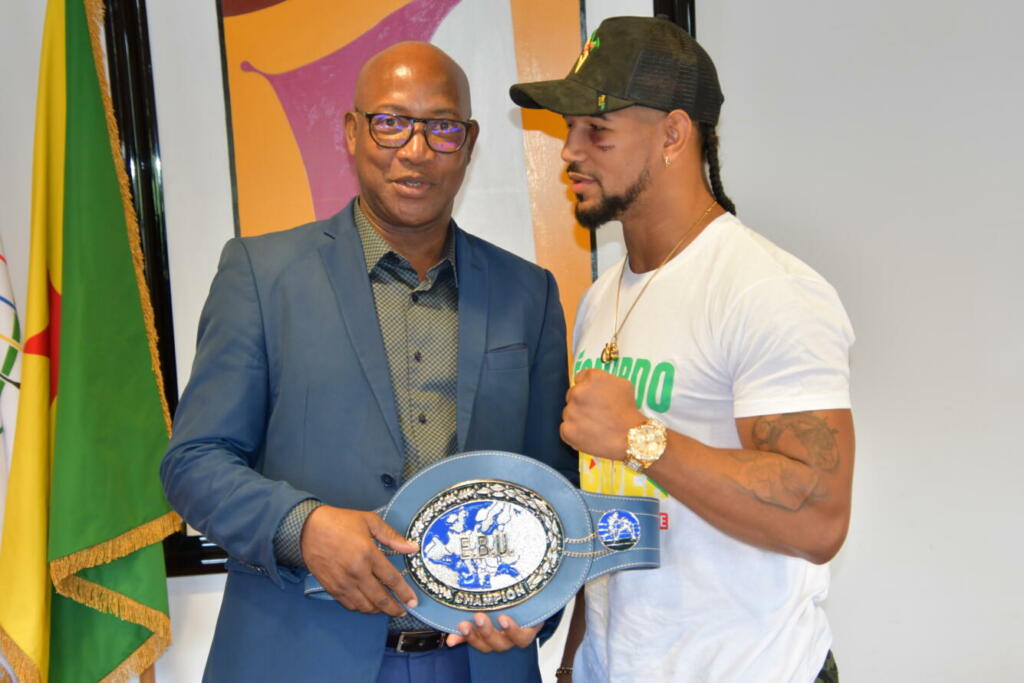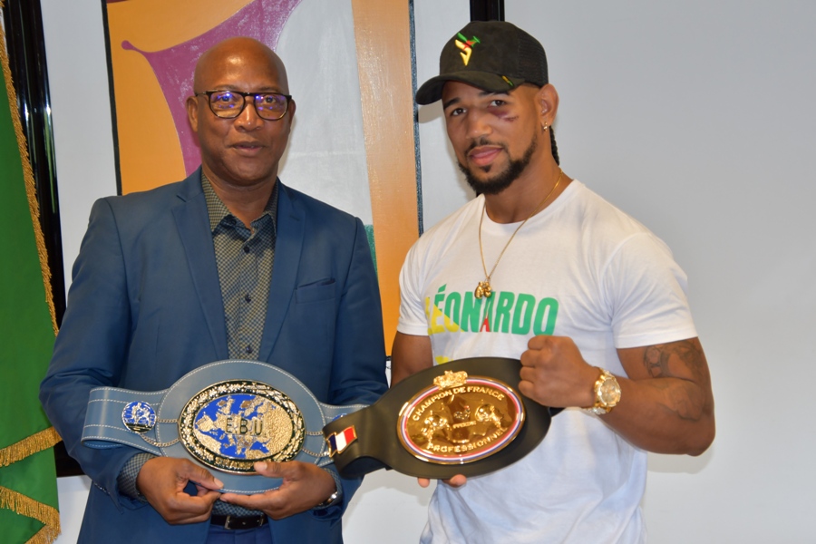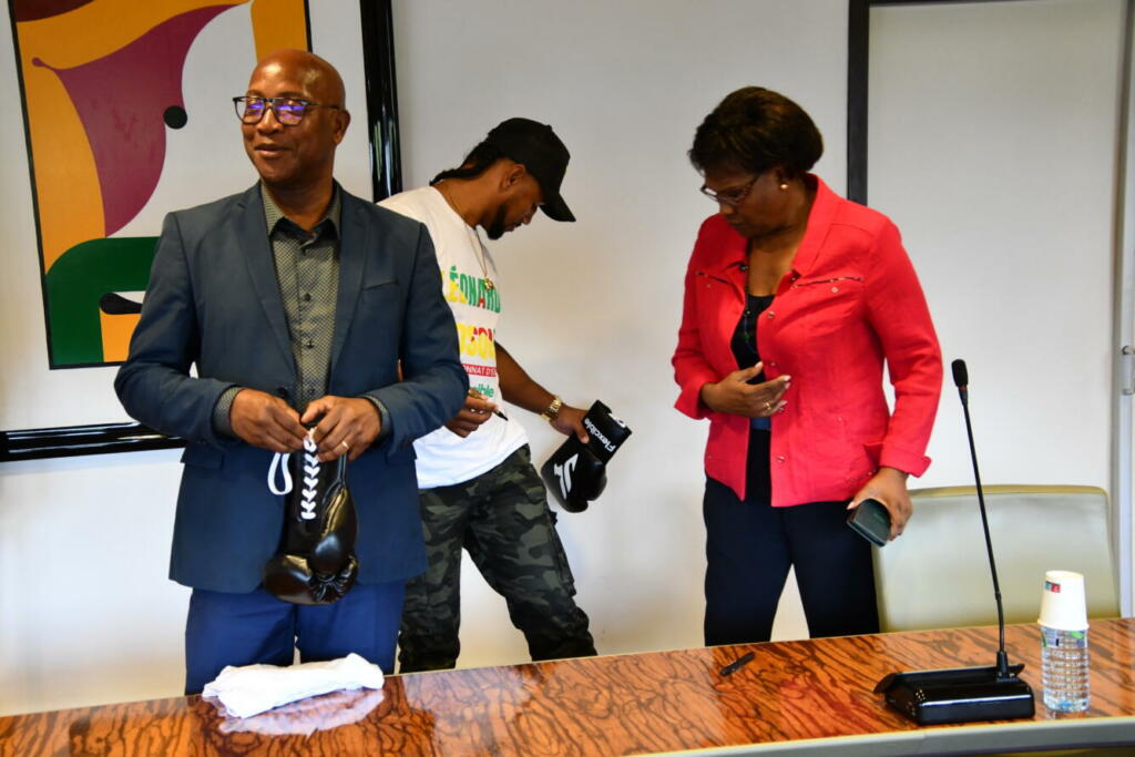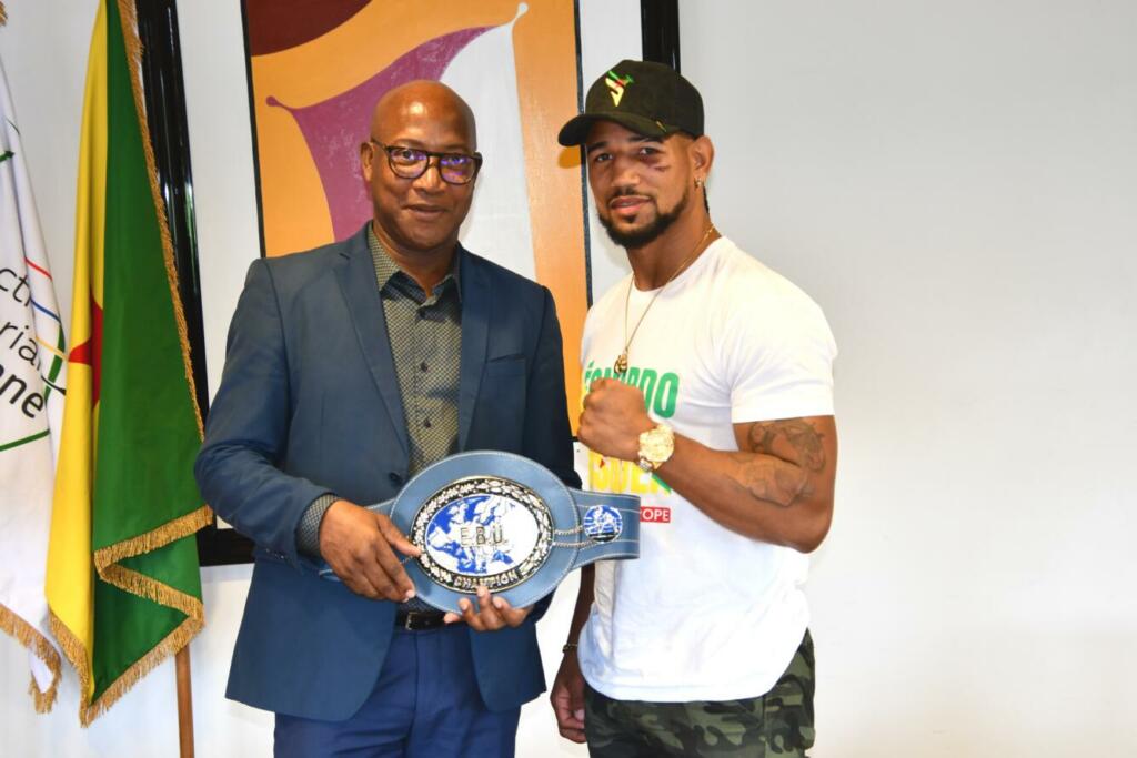 Ce lundi 27 novembre 2023, Gabriel Serville, Président de la Collectivité Territoriale de Guyane (CTG) accompagné de Lucien Alexander, Conseiller Territorial délégué à la Fiscalité et la Performance budgétaire, recevait à l’Hôtel territorial à Cayenne, Léonardo Mosquea Jimenez, sacré Champion de L’Union européenne de boxe des lourds-légers (ceinture EBU Silver), Yoma Jacobin, ancien champion d’Europe de boxe, plusieurs boxeurs amateurs et de nombreux représentants du monde de la boxe, parmi lesquels Romaric Ruper, organisateur de ce gala, le capitaine des “Yana Doko”, Ludovic Baal, Steeve Falgayrettes, entraîneur adjoint, Marcel Bafau, président de la ligue de football de Guyane, Jaqcues Chinon entraîneur de box, pour les féliciter pour leurs exploits sportifs.