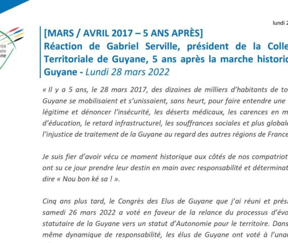 [MARS / AVRIL 2017 – 5 ANS APRÈS] Réaction de Gabriel Serville, président de la Collectivité Territoriale de Guyane, 5 ans après la marche historique de Guyane