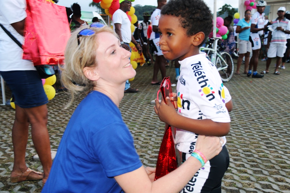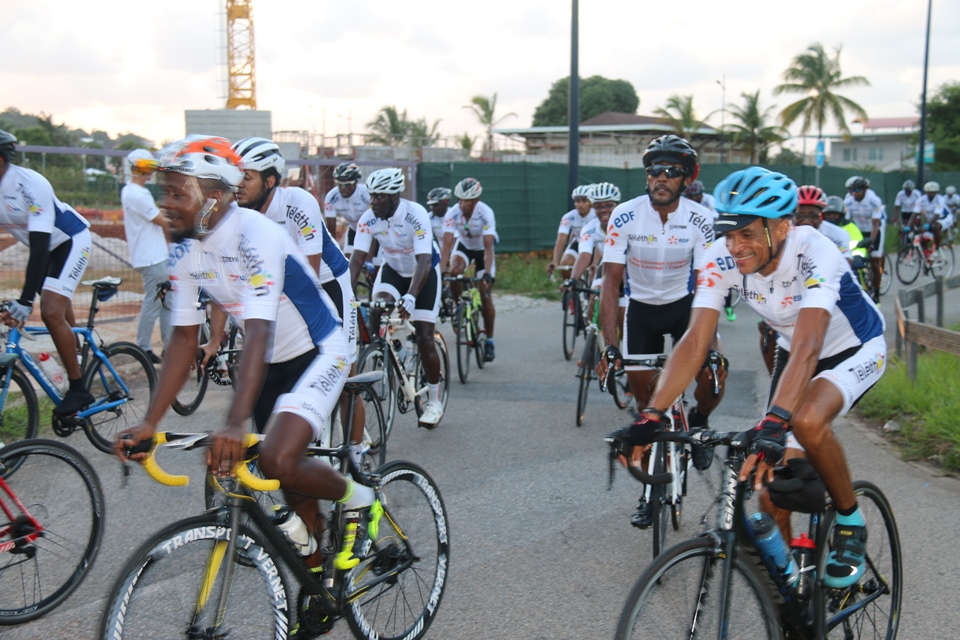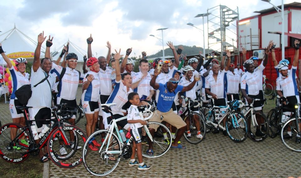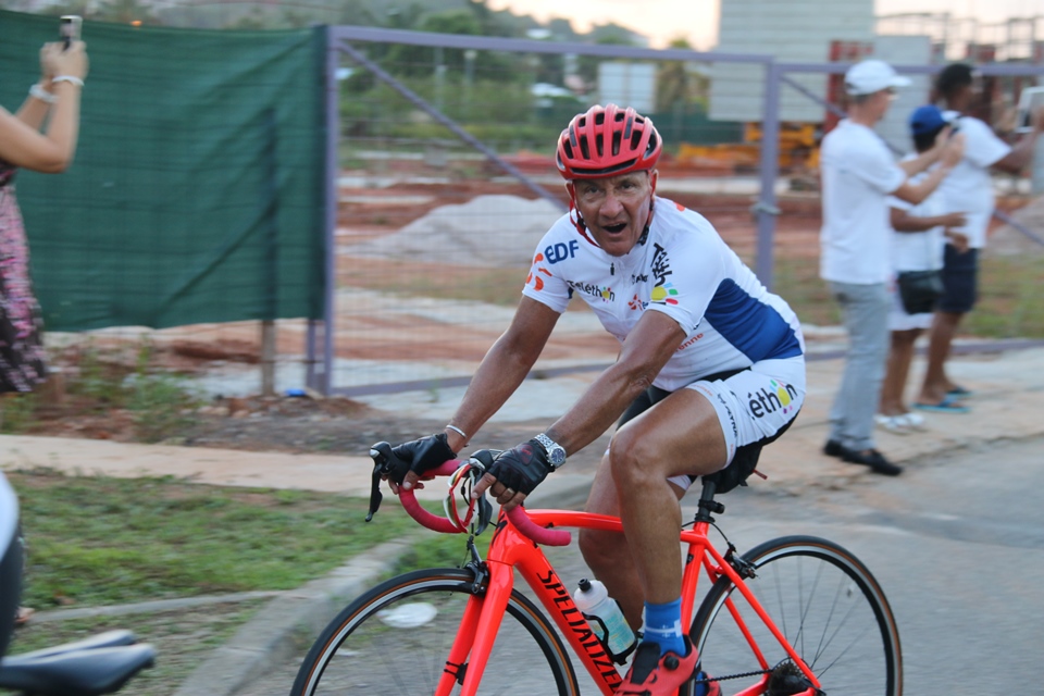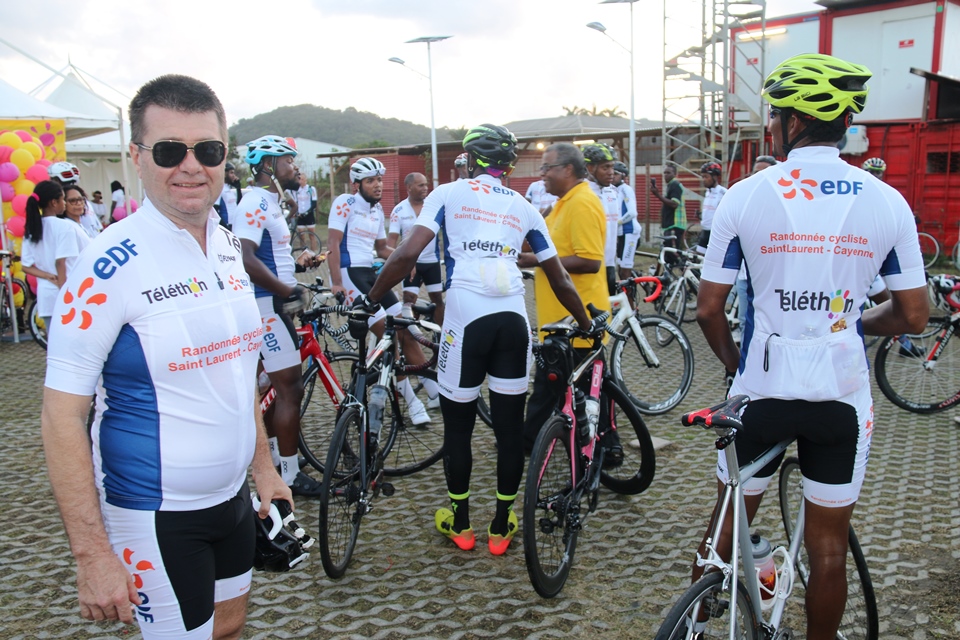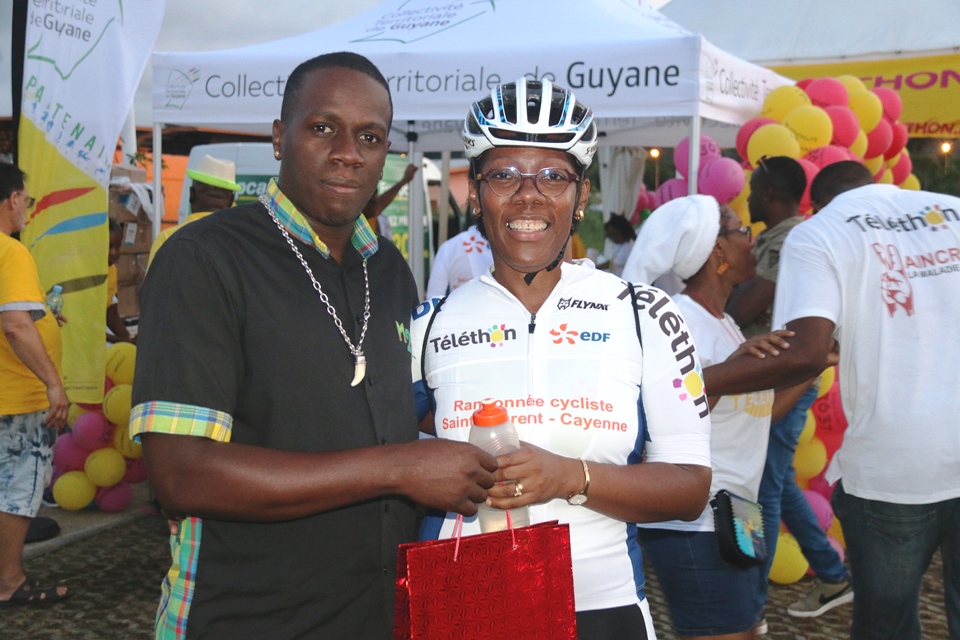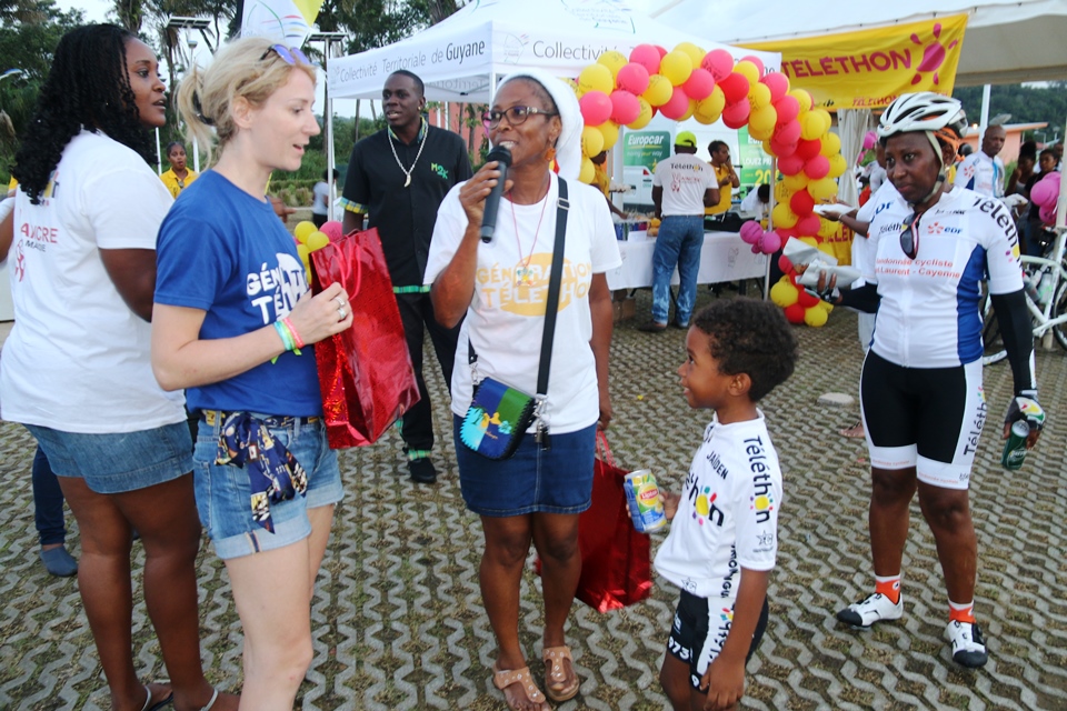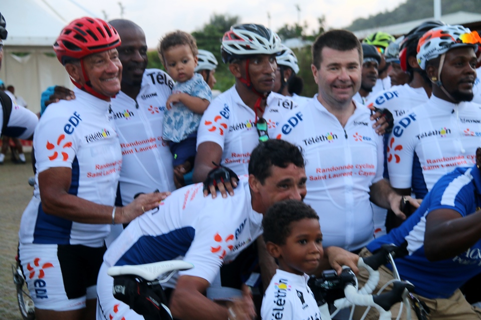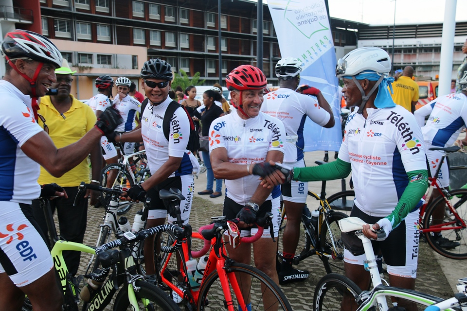 Après un long périple de 250 kilomètres entre Saint-Laurent du Maroni et la capitale, les coureurs cyclistes ont franchi la ligne d’arrivée à la tombée de la nuit, face au Hall Sportif Kévin Séraphin à Cayenne. Parmi les nombreux coureurs cyclistes, on observera le Président de la Collectivité Territoriale de Guyane (CTG), Rodolphe Alexandre, le Directeur d’EDF Guyane, Michel Durand et bien d’autres participants jeunes et moins jeunes, vétérans. Cette opération avait pour objectif, la récolte des dons en faveur de la cause soutenue par le Téléthon.