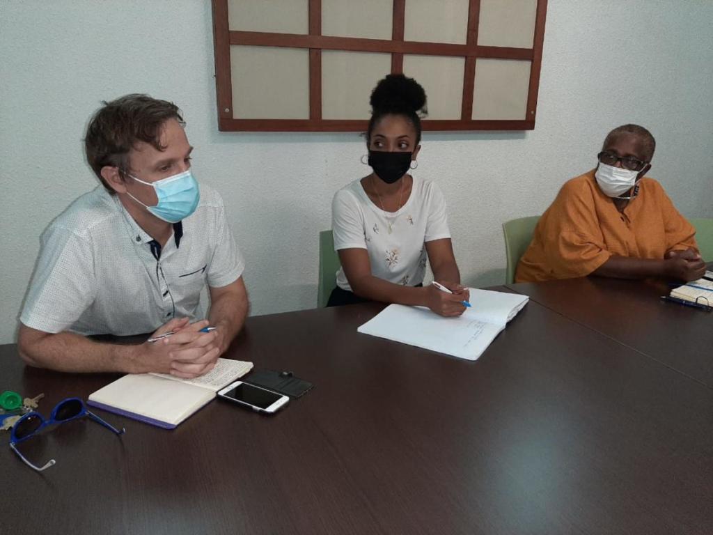 Jeudi 18 novembre 2021, les équipes du pôle Culture, Patrimoine et Identités et de l’EPCC Les Trois-Fleuves ont pu rencontrer le metteur en scène centrafricain Vincent Mambachaka et échanger avec lui sur la tournée et les possibilités de diffusion de la pièce en 2022-2023.