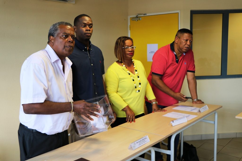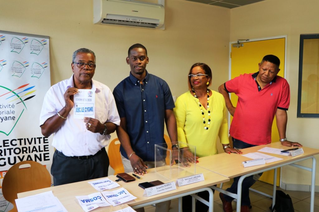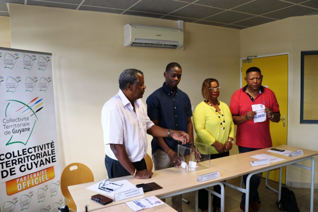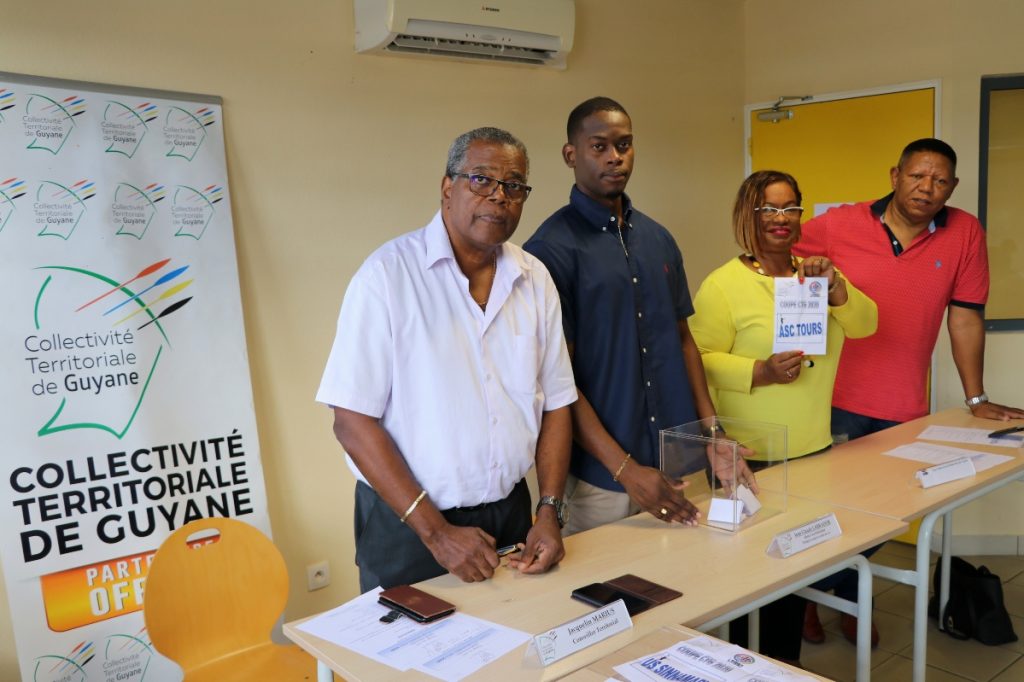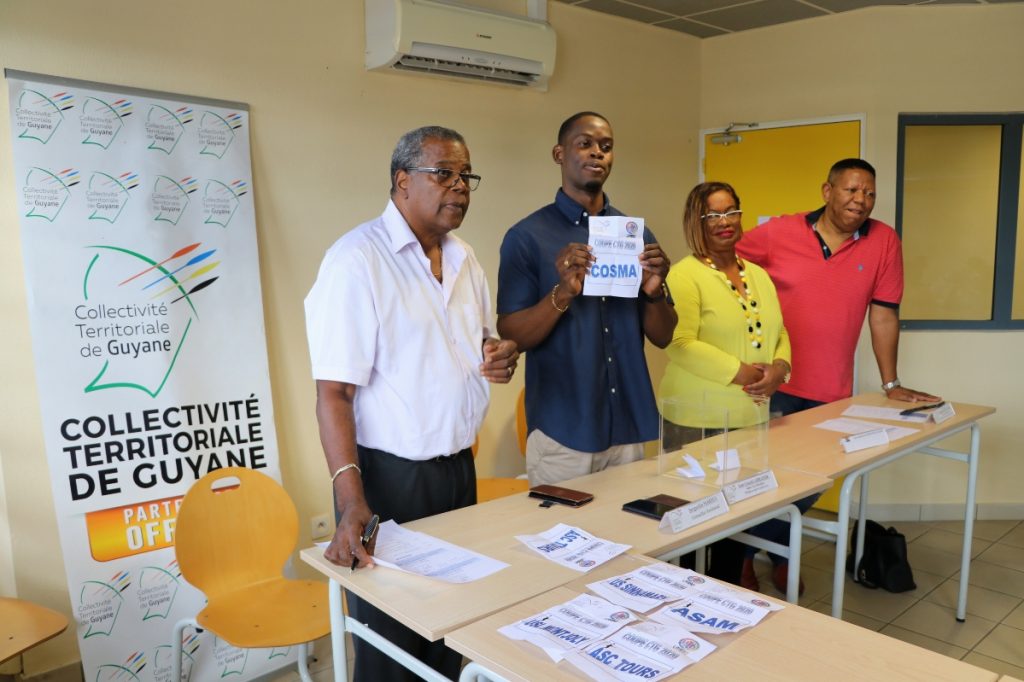 Pour la nouvelle année 2020, le tirage au sort pour les demi-finales séniors filles, séniors garçons, de la Coupe CTG 2020 de Basket-ball s’est tenu ce mercredi 15 janvier 2020 à l’IFAS (Institut de Formation et d’Accès au Sport de haut niveau), route de Baduel à Cayenne, en présence de Jean-Claude Labrador, vice-président de la CTG délégué au Sport et au Cadre de vie, de Rolande Chalco-Lefay, vice-présidente déléguée à la Culture, au Patrimoine et aux Identités, de Jacquelin Marius, conseiller territorial de la Guyane, et de représentants des Clubs qualifiés et de la Ligue de Basket-ball de la Guyane, notamment le trésorier, Sylvain Létard représentant la présidente de cette ligue.