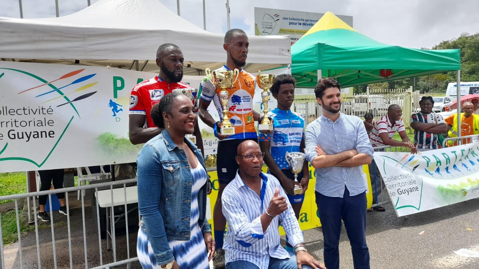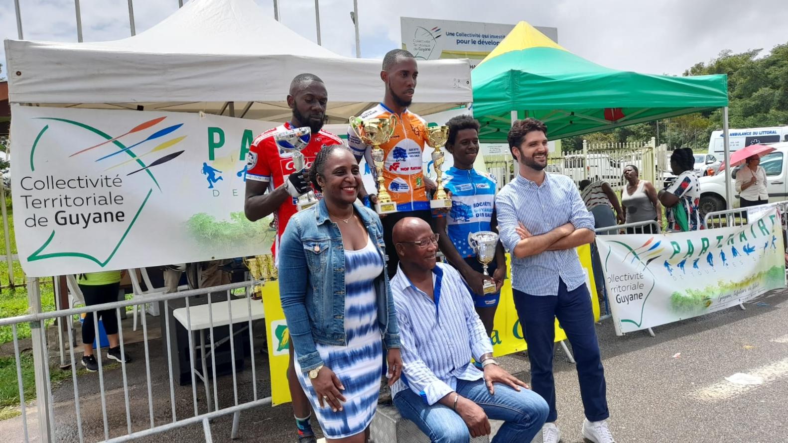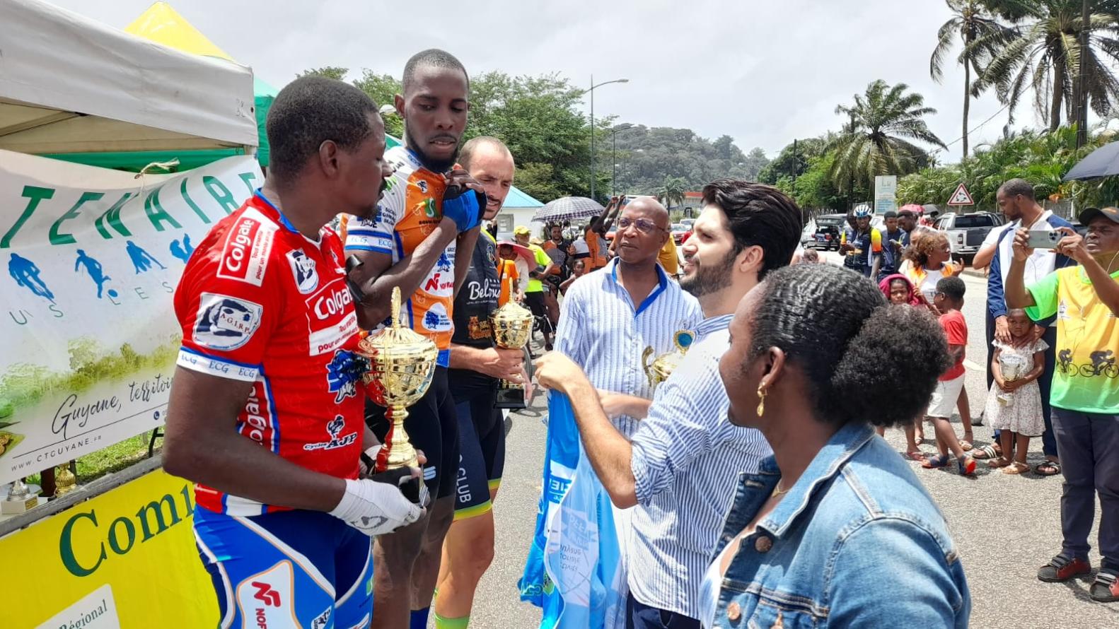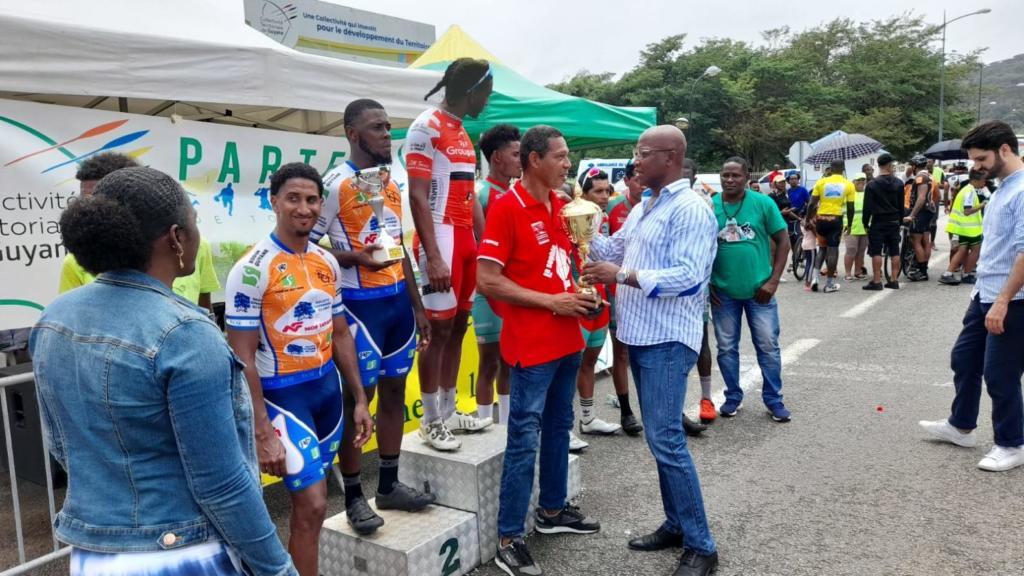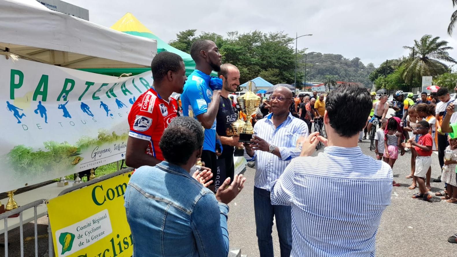 À l’issue de l’arrivée de la deuxième et dernière manche, Gabriel Serville, président de la Collectivité Territoriale de Guyane,Thibault Lechat-Vega, 3e vice-président délégué à l’Europe, aux Affaires institutionnelles, à l’Egalité et aux Relations avec les Guyanais de l’extérieur et Aïssatou Chambaud, 6e vice-présidente, déléguée à la Famille et à l’Aide sociale à l’enfance ont adressé leurs plus vives félicitations au vainqueur, et procédé à la remise des trophées aux meilleurs coureurs de cette compétition très convoitée.