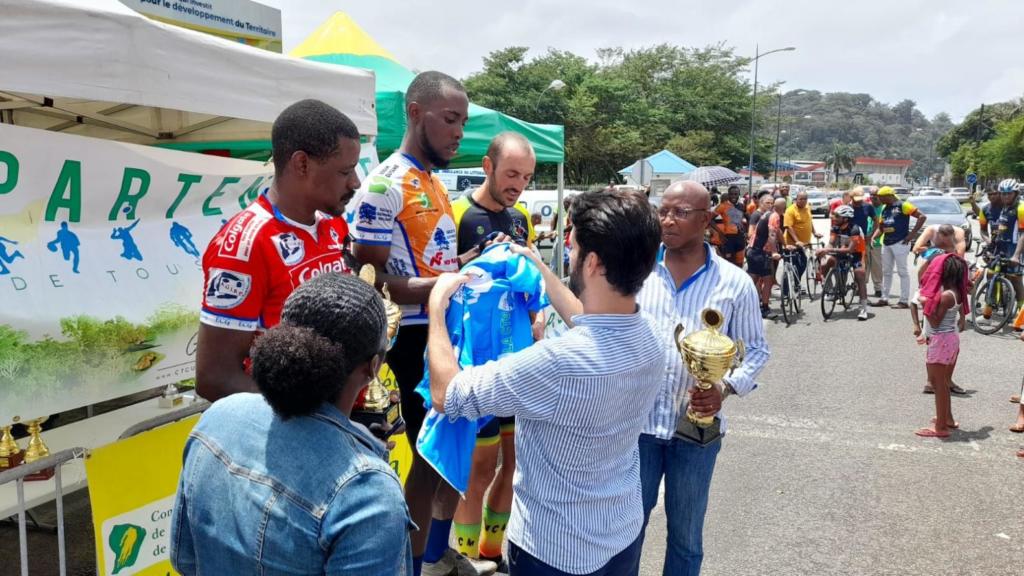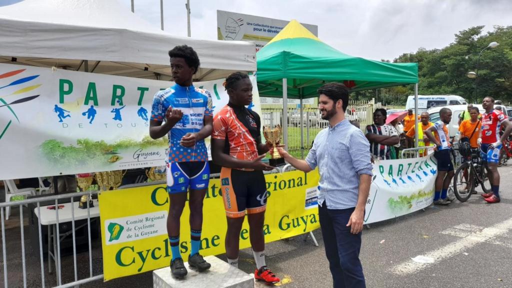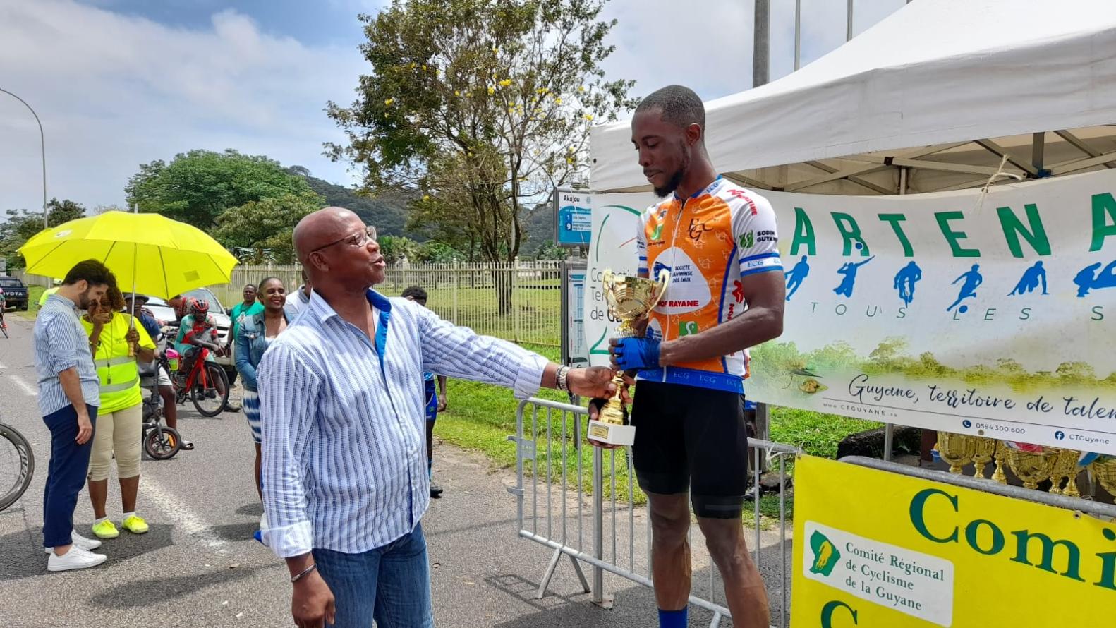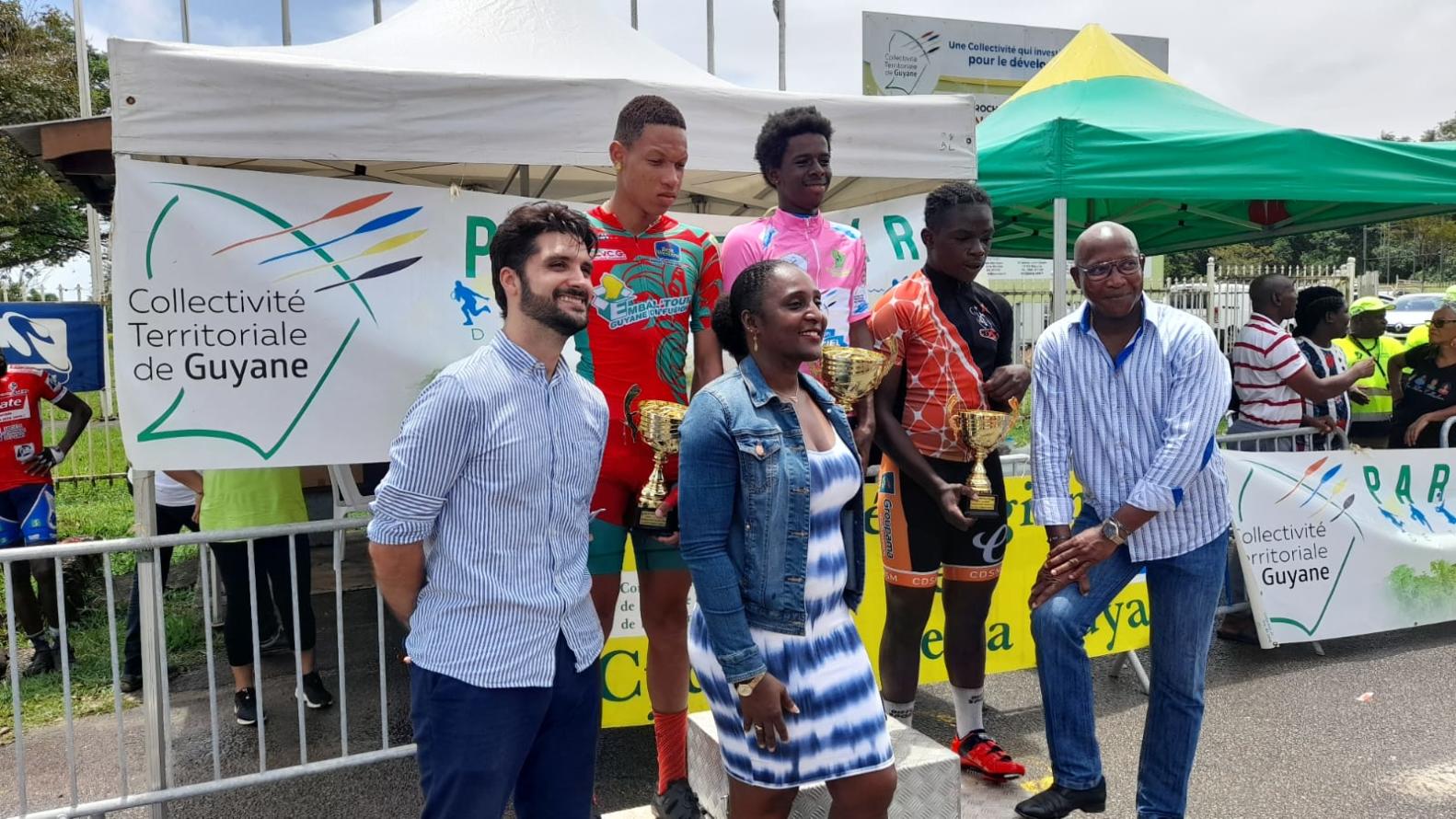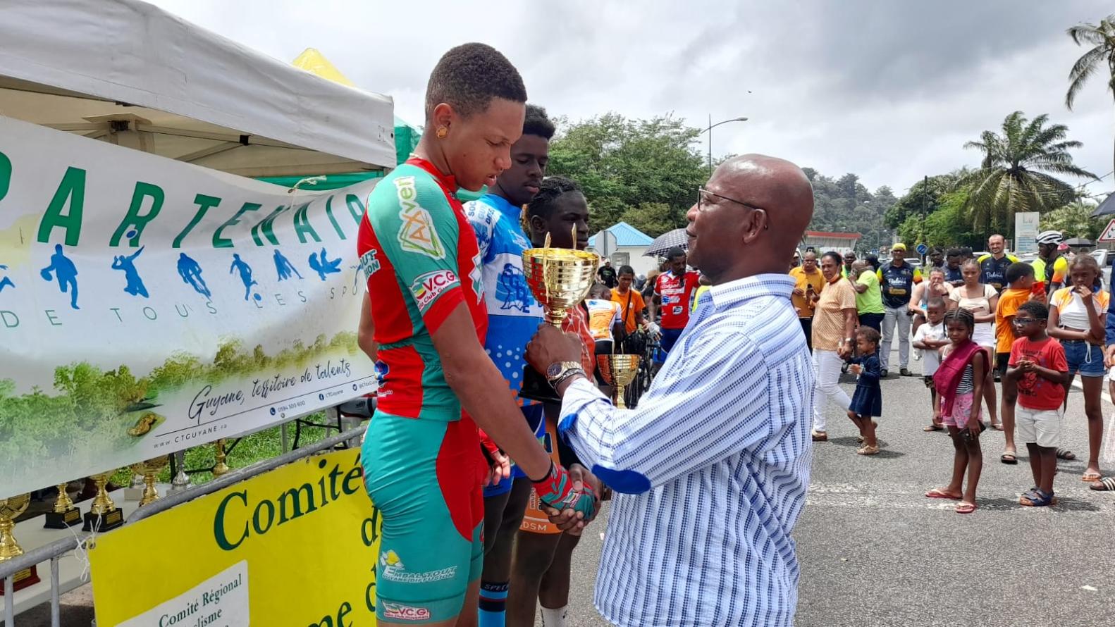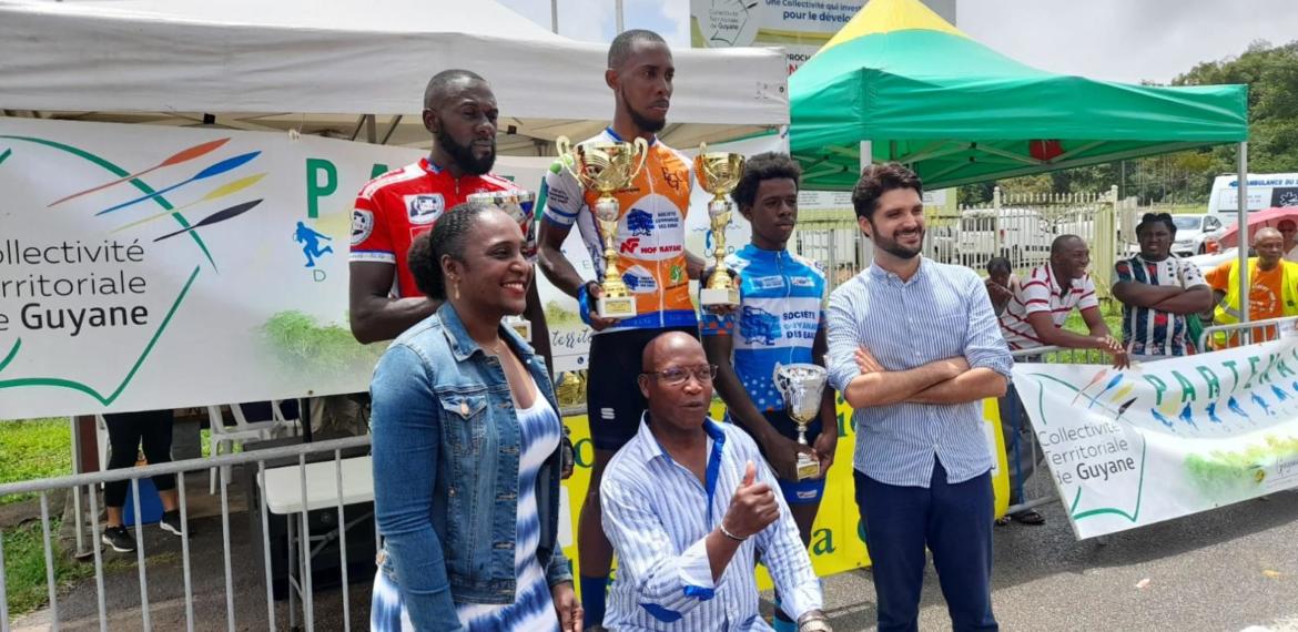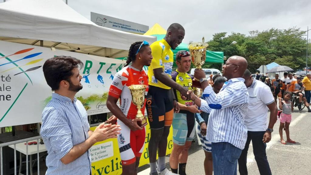 À l’issue de l’arrivée de la deuxième et dernière manche, Gabriel Serville, président de la Collectivité Territoriale de Guyane,Thibault Lechat-Vega, 3e vice-président délégué à l’Europe, aux Affaires institutionnelles, à l’Egalité et aux Relations avec les Guyanais de l’extérieur et Aïssatou Chambaud, 6e vice-présidente, déléguée à la Famille et à l’Aide sociale à l’enfance ont adressé leurs plus vives félicitations au vainqueur, et procédé à la remise des trophées aux meilleurs coureurs de cette compétition très convoitée.