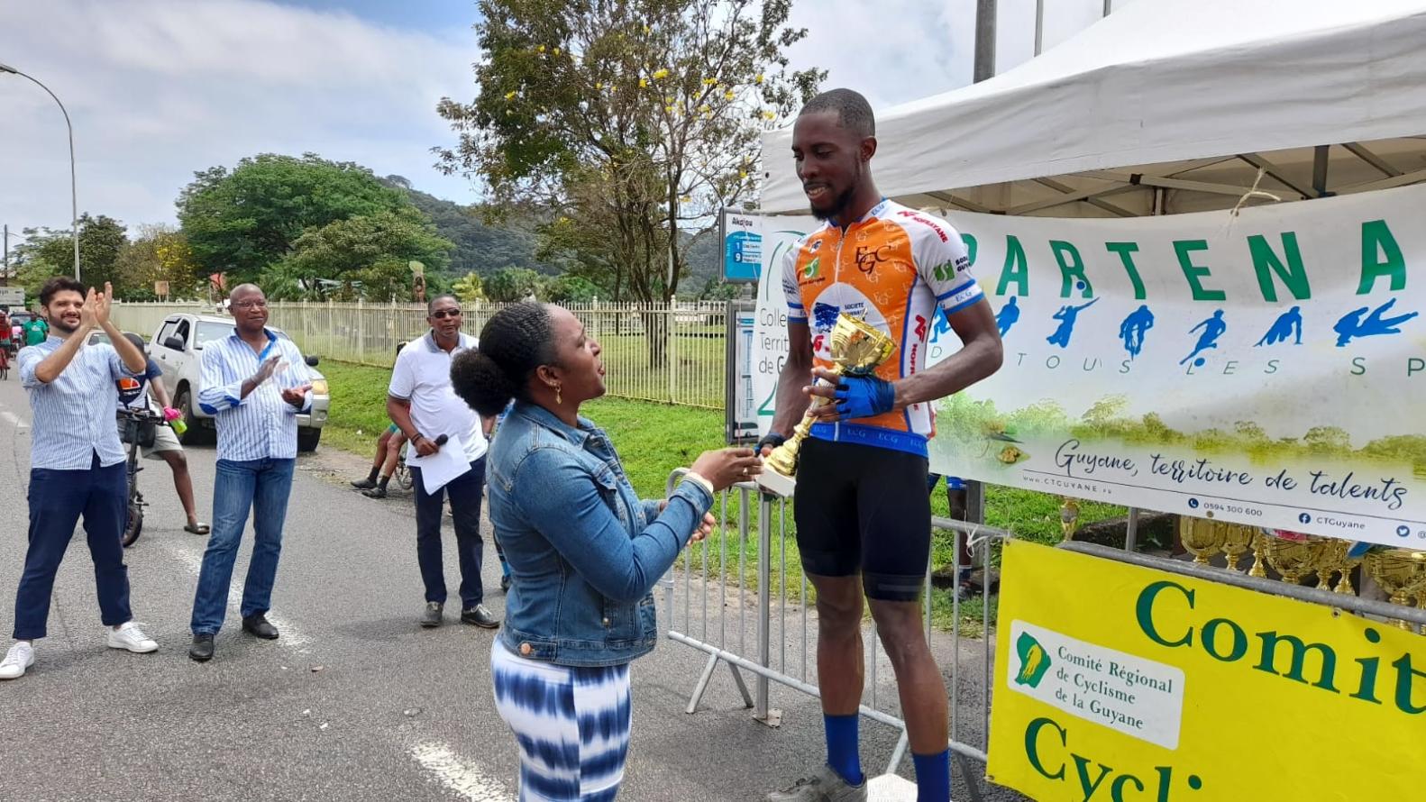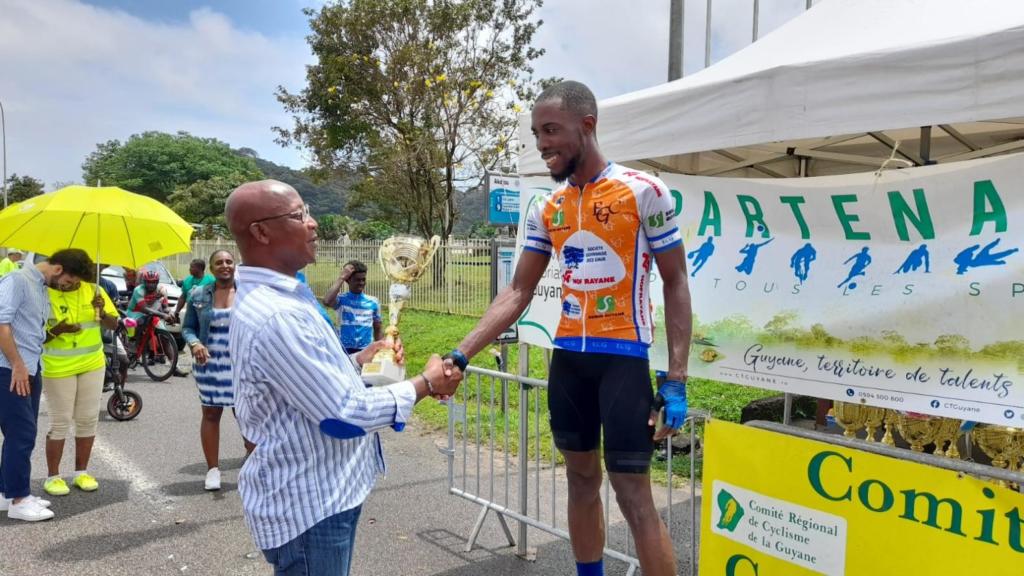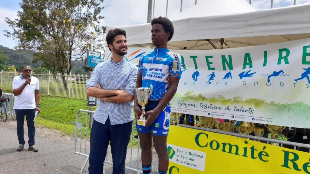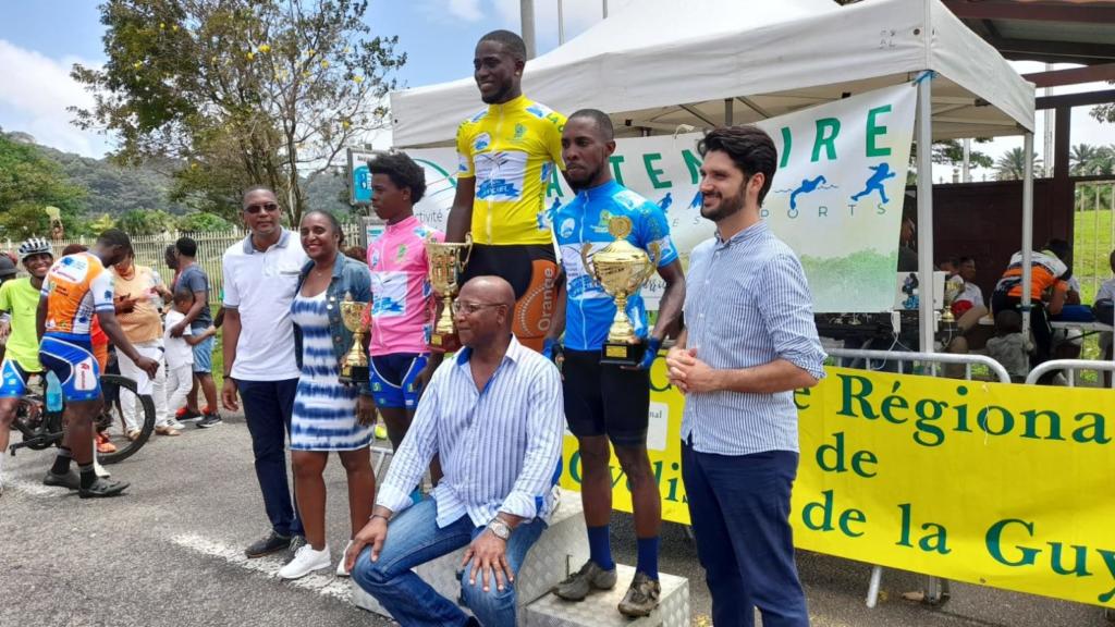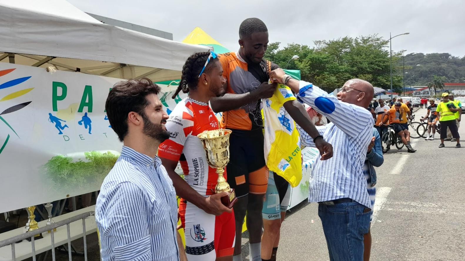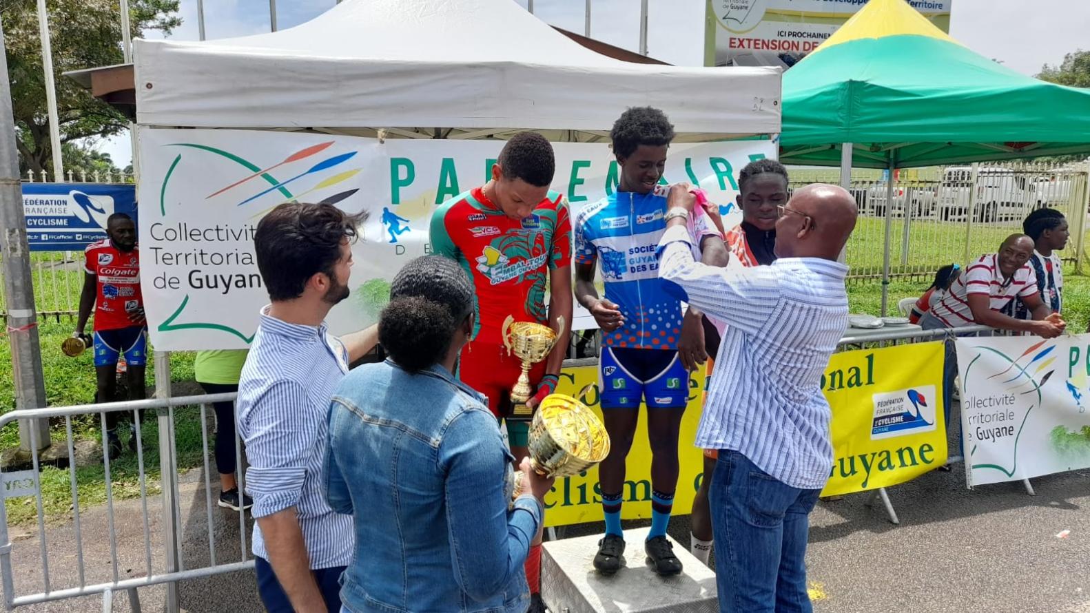À l’issue de l’arrivée de la deuxième et dernière manche, Gabriel Serville, président de la Collectivité Territoriale de Guyane,Thibault Lechat-Vega, 3e vice-président délégué à l’Europe, aux Affaires institutionnelles, à l’Egalité et aux Relations avec les Guyanais de l’extérieur et Aïssatou Chambaud, 6e vice-présidente, déléguée à la Famille et à l’Aide sociale à l’enfance ont adressé leurs plus vives félicitations au vainqueur, et procédé à la remise des trophées aux meilleurs coureurs de cette compétition très convoitée.