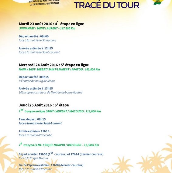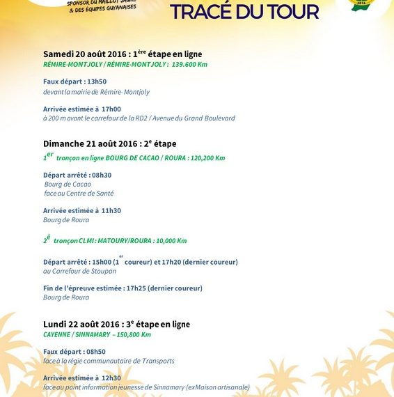 Tour de Guyane 2016 : J-7 ! Découvrez le tracé de la 27e édition