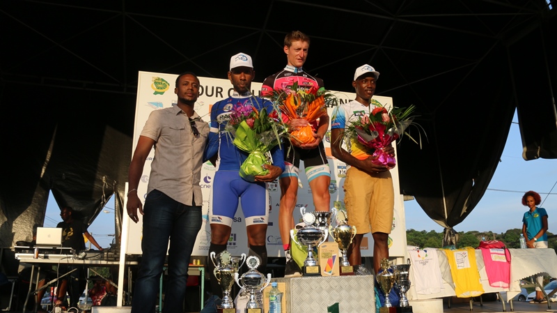 A l’issue de cette journée, c’est le martiniquais Mickael LAURENT, récompensé par Mécène FORTUNE, 14ème Vice-président de la CTG, et Sau Wah LING, conseillère territoriale, qui récupère le maillot jaune des épaules du guadeloupéen Kélian DURO.