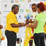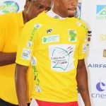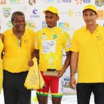 Le guadeloupéen Duro Kelian, récompensé par Jean-Claude Labrador, 4e Vice-président de la CTG, délégué au sport, s’empare de nouveau du maillot jaune des épaules de Mickaël Laurent, de la Martinique.
