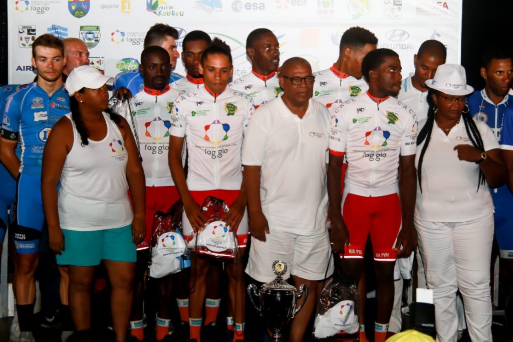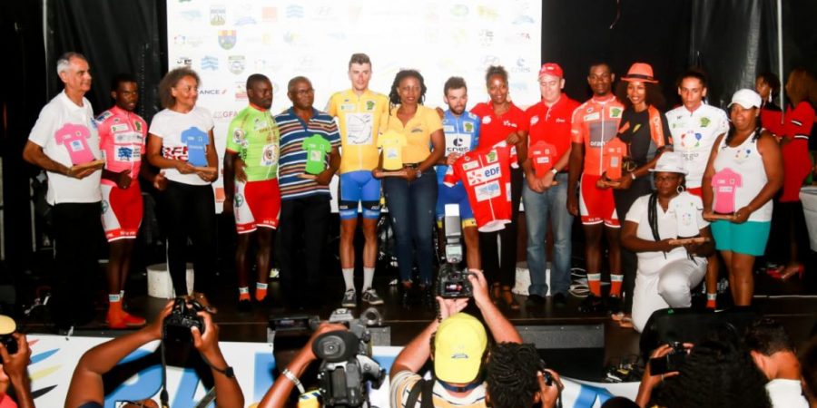 Le Président de la CTG, partenaire officiel de la compétition et Sponsor du Maillot jaune, Rodolphe Alexandre, a eu l’honneur de remettre la tunique briguée par plus de 80 coureurs cette année, en présence de sa Vice-Présidente, Rolande Chalco-Lefay, et des Conseillers Territoriaux Laurietta Desmangles, Céline Régis, Hadj Boucheida et Jacquelin Marius.