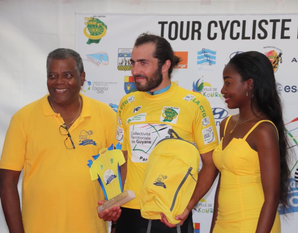 C’est à la Collectivité Territoriale de Guyane, sponsor officiel du Maillot Jaune pour le Tour de Guyane 2018, que revenait l’honneur de remettre la tunique tant convoitée à l’Allemand Herman Keller qui s’est imposé comme premier du classement.