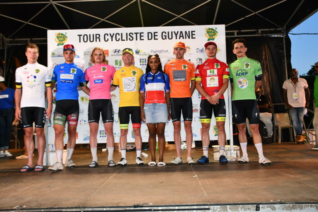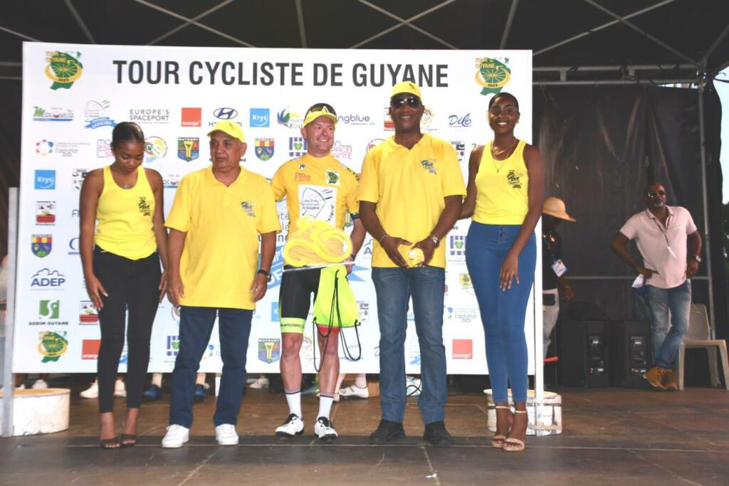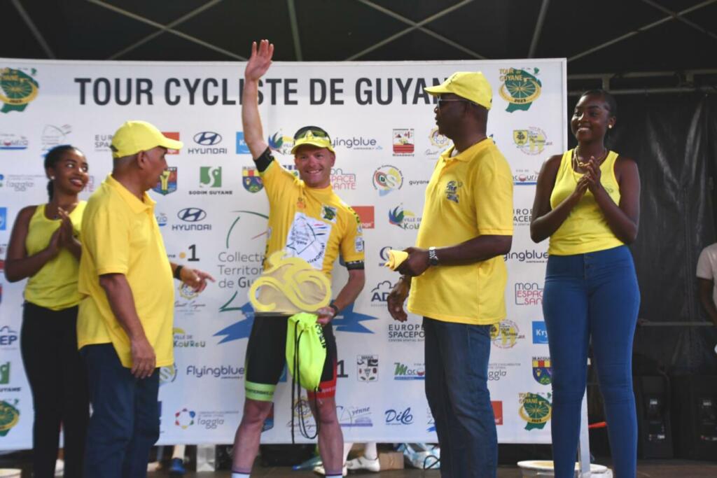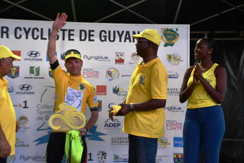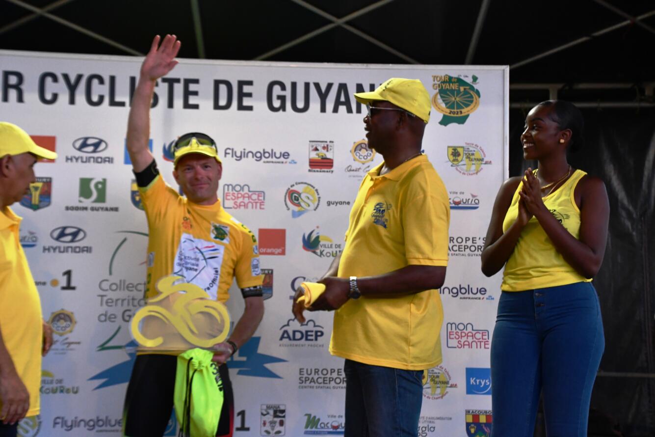 Lors de la remise des maillots et des trophées, Gabriel Serville, Président de la Collectivité Territoriale de Guyane et Christian Noko, Conseiller Territorial ont remis le maillot jaune à Richards Mark de la Grande-Bretagne, 1er du classement général de cette deuxième étape du Tour de Guyane 2023. La troisième étape de ce tour se disputera entre Cayenne et Sinnamary le lundi 21 août 2023 et se poursuivra dans diverses communes de Guyane pour une arrivée finale prévue le 27 août prochain au terme d’un parcours de 1 234,84 Km.