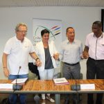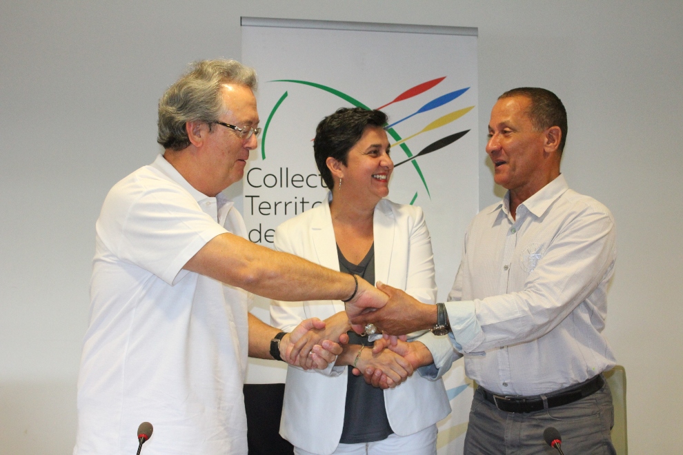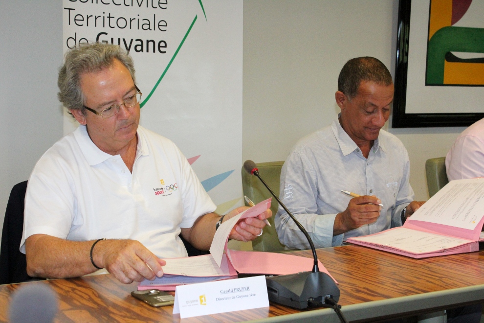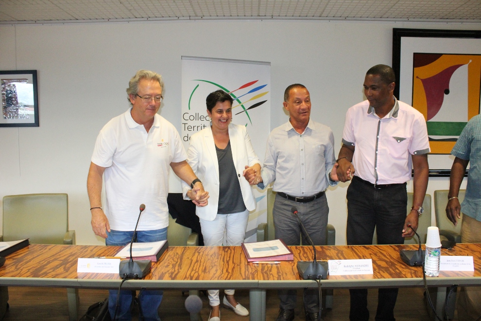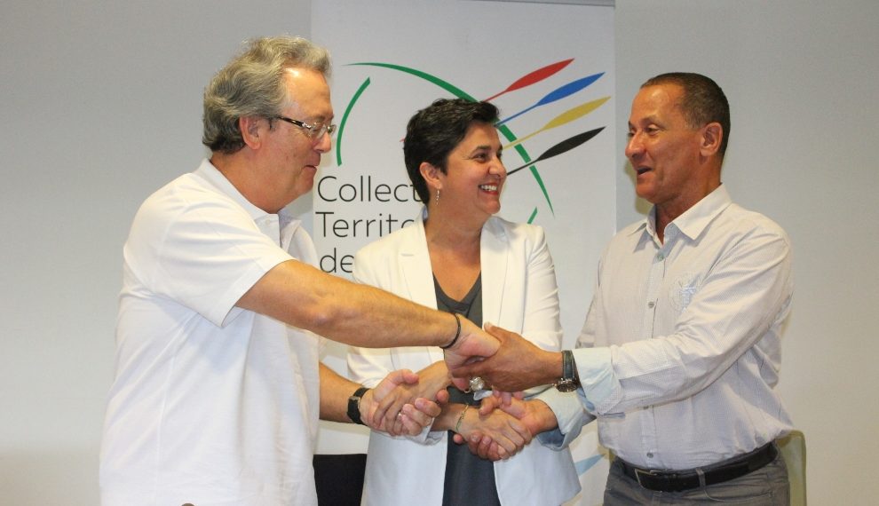 Le président de la CTG, Rodolphe Alexandre, le Directeur régional de Guyane 1ere –France Télévisions-, Gérald Prufer et la Directrice régional Guyane/Antilles -France Télévisions Publicité Inter Océans-, Stéphanie Gaumont ont paraphé cette convention de partenariat de 30 000 euros. Enfin, ils ont montré leur détermination à faire de ce grand rendez-vous sportif -catalyseur de développement touristique et économique- un succès populaire partagé sur l’ensemble du territoire.