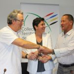 En milieu de matinée aujourd’hui, mardi 16 août 2016, à 4 jours de la 1ère étape, le président de la CTG, Rodolphe Alexandre, plusieurs vice-présidents et partenaires étaient réunis à l’hôtel territorial pour participer à la signature de cette convention. Tous ont souhaité que ce tour soit à la hauteur des ambitions affichées, en dépit des contraintes budgétaires. L’administration territoriale et ses services sont mobilisés sur ce tour long de 1 273 km, reliant Rémire-Montjoly, Roura, Matoury, Sinnamary, Mana, Apatou –porte d’entrée du Maroni-, Saint-Laurent du Maroni, Iracoubo, Kourou, Macouria, Régina, Montsinéry-Tonnégrande et Cayenne. Il faudra compter sur la sélection cycliste à l’effigie de la CTG au départ de la caravane. Rodolphe Alexandre a aussi salué l’implication CNES/CSG, qui serait partenaire de l’arrivée de la 8è étape à l’Hôtel Territorial, le samedi 27 août prochain.