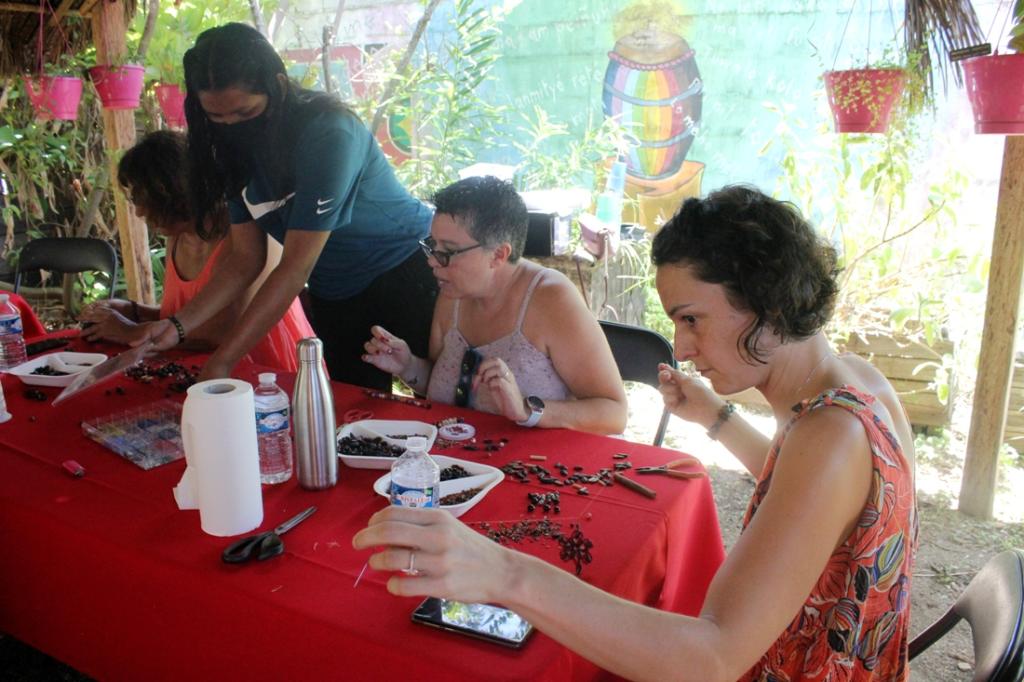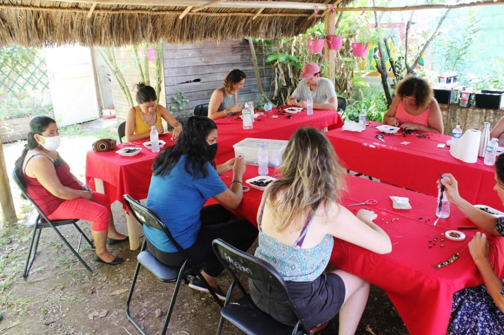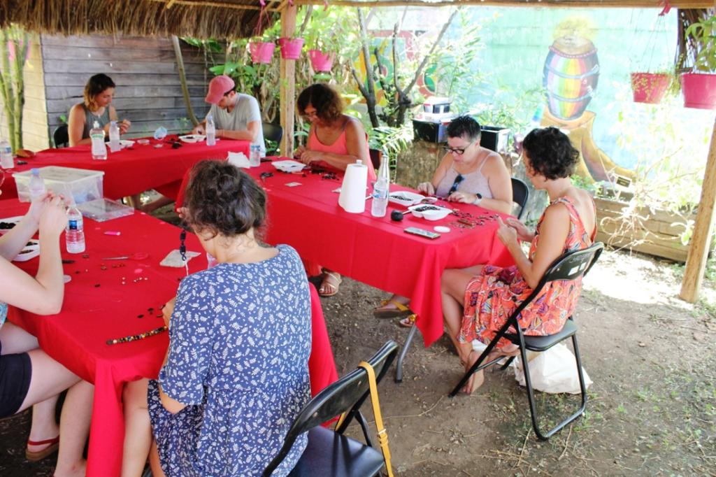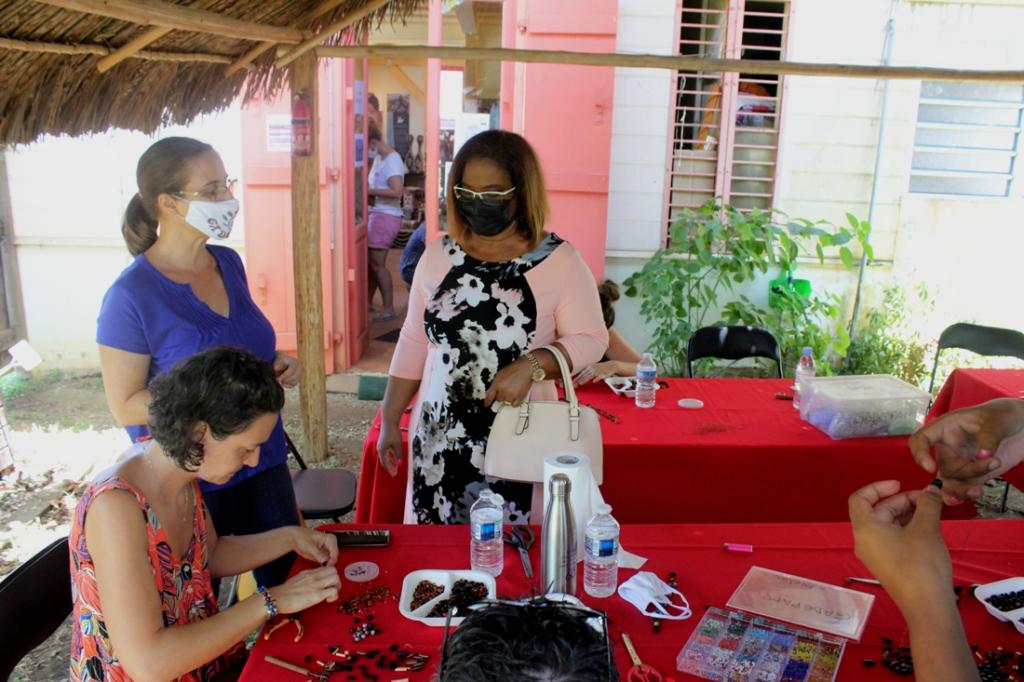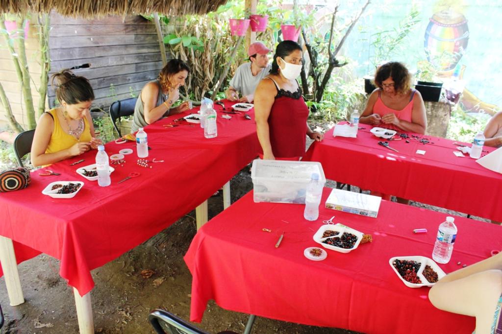 L’Association GADEPAM avec le concours de Rosangela Nunes dos Santos recevait une dizaine de visiteuses dans son atelier artisanal « Graines » afin de les initier à la confection de bracelets et bijoux Palikur à l’angle de la rue Vermont Polycarpe et 11 rue Pichevin à Cayenne.
