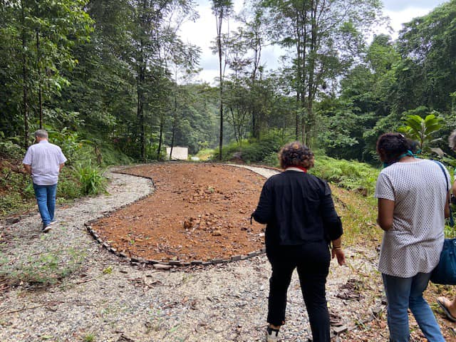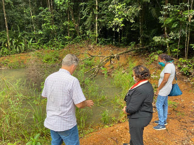 Hélène Sirder, 1ère vice-présidente de la Collectivité Territoriale de Guyane (CTG) s’est rendue hier matin à la Réserve Naturelle Régionale Trésor, accompagnée d’Elisabeth Wilicki chargée de Mission Développement Durable à la CTG, dans le cadre de sa délégation (la CTG est autorité de gestion de la réserve) pour constater l’avancement des travaux.